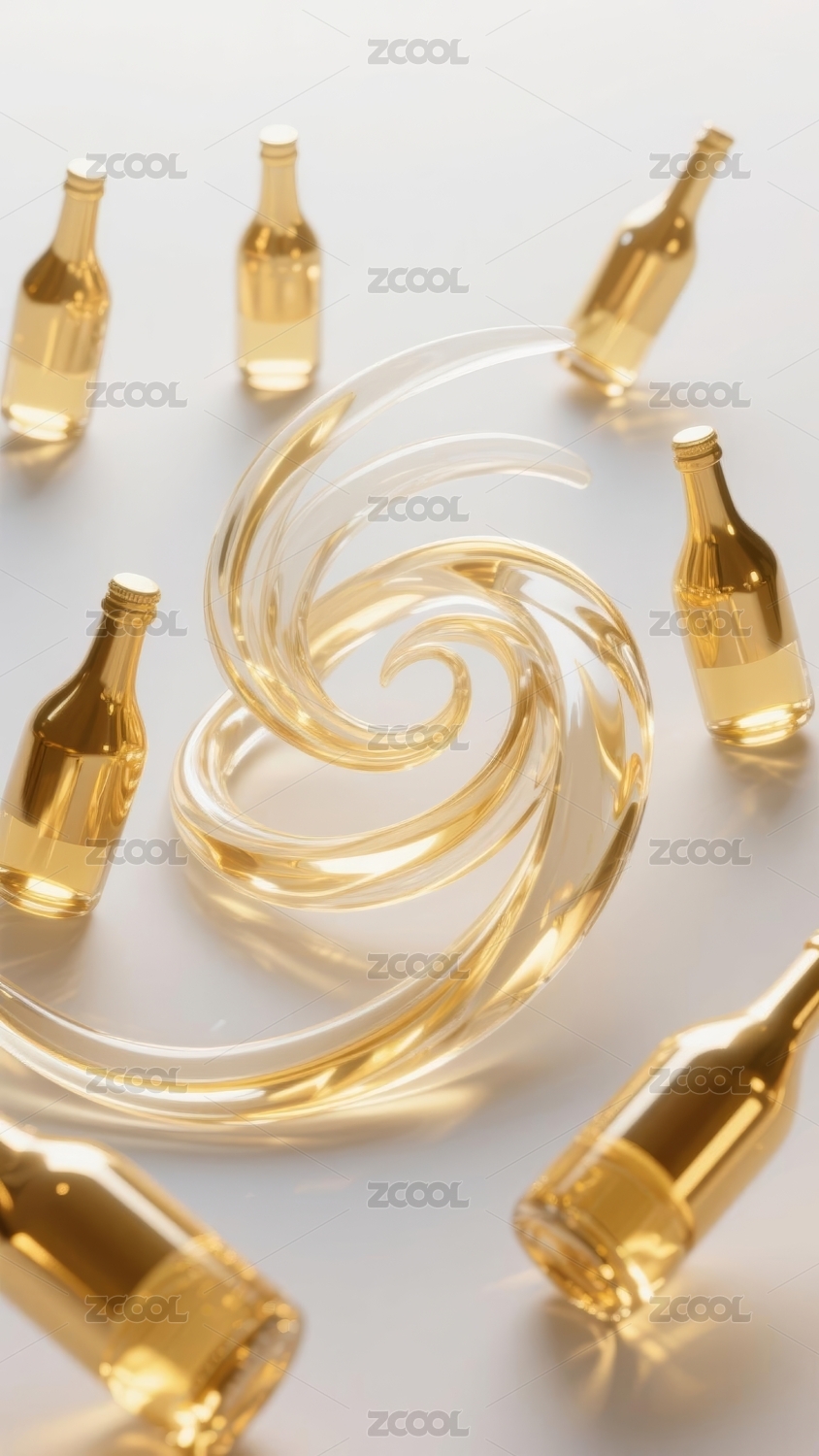 金色酒瓶流动线条宣传场景