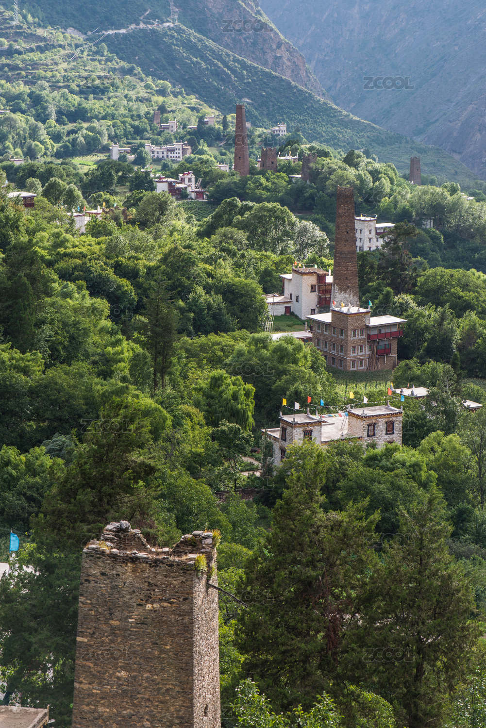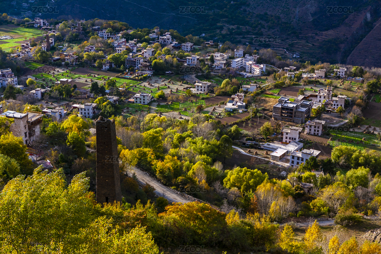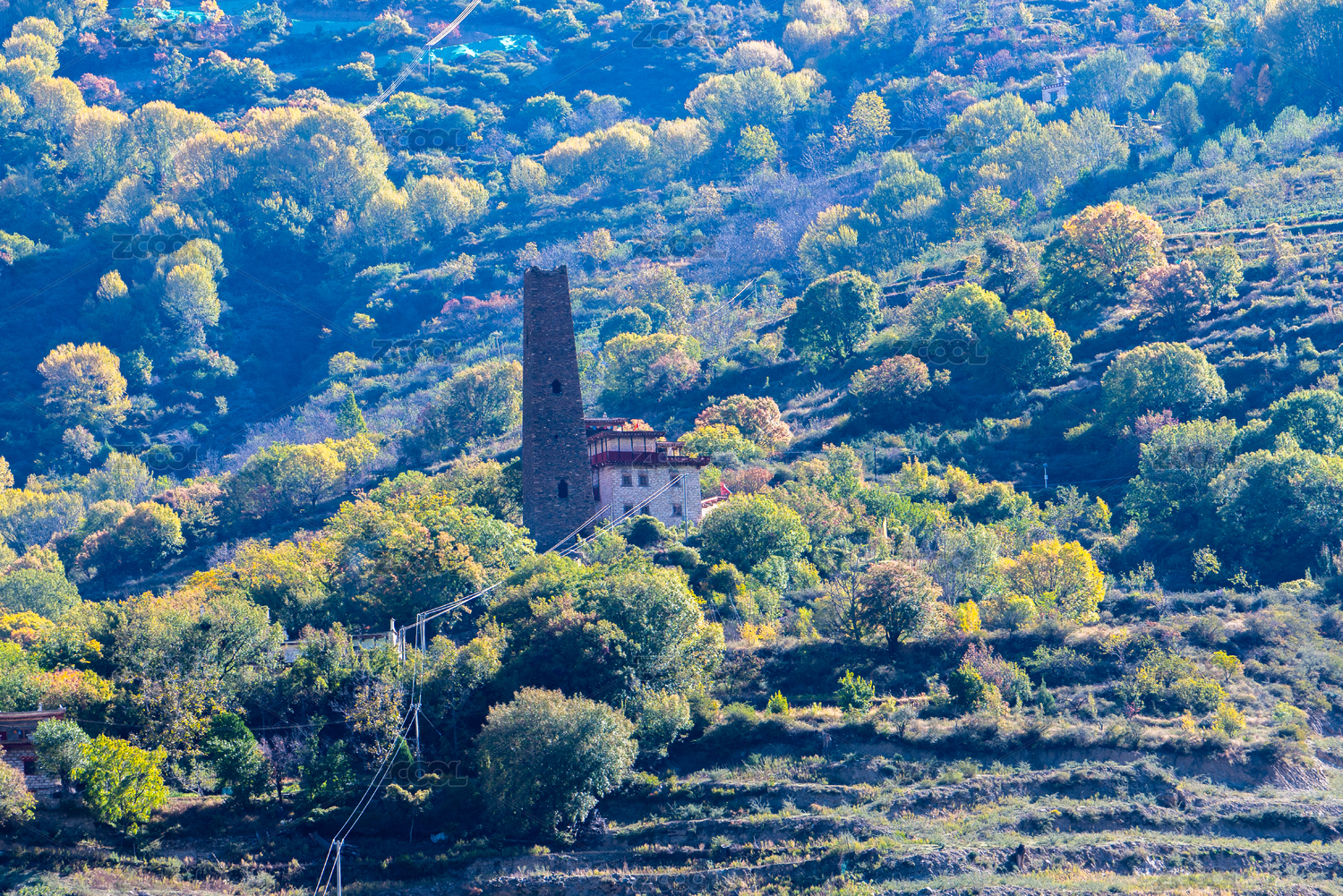 四川甘孜丹巴中路乡的藏寨和古碉楼