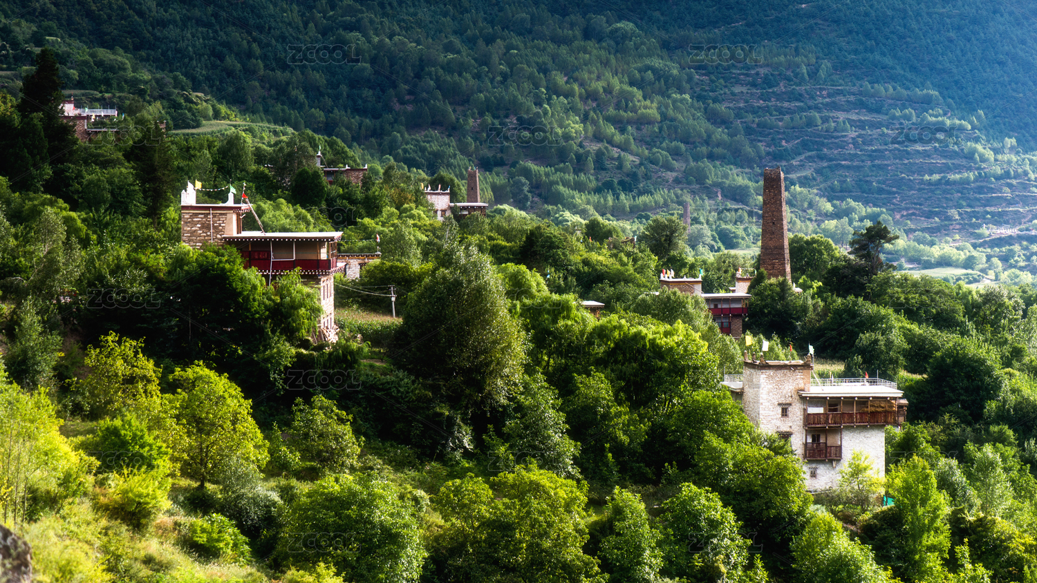 阳光下的四川甘孜丹巴的中里和甲居藏寨