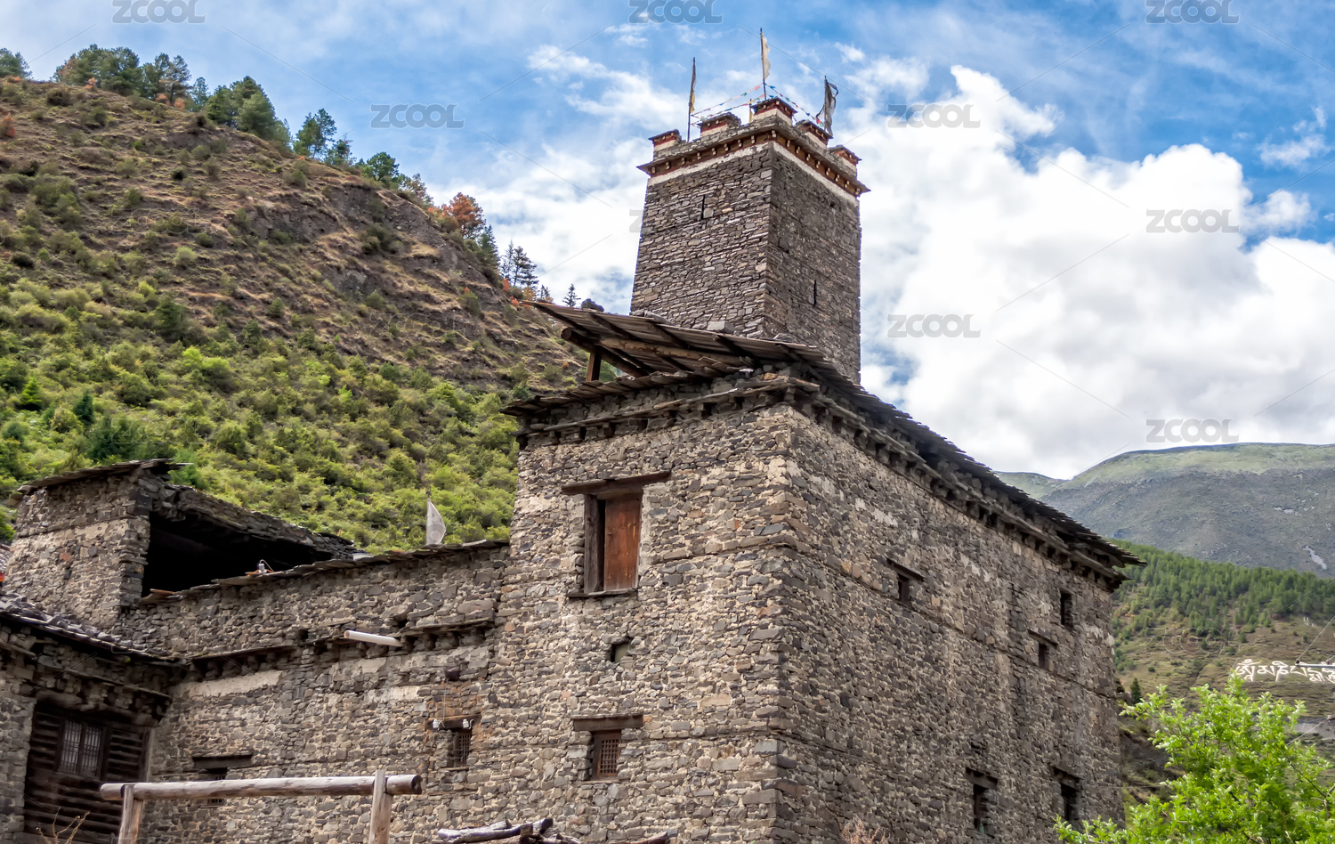 甘孜州康定甲根坝乡的藏族民居和碉楼