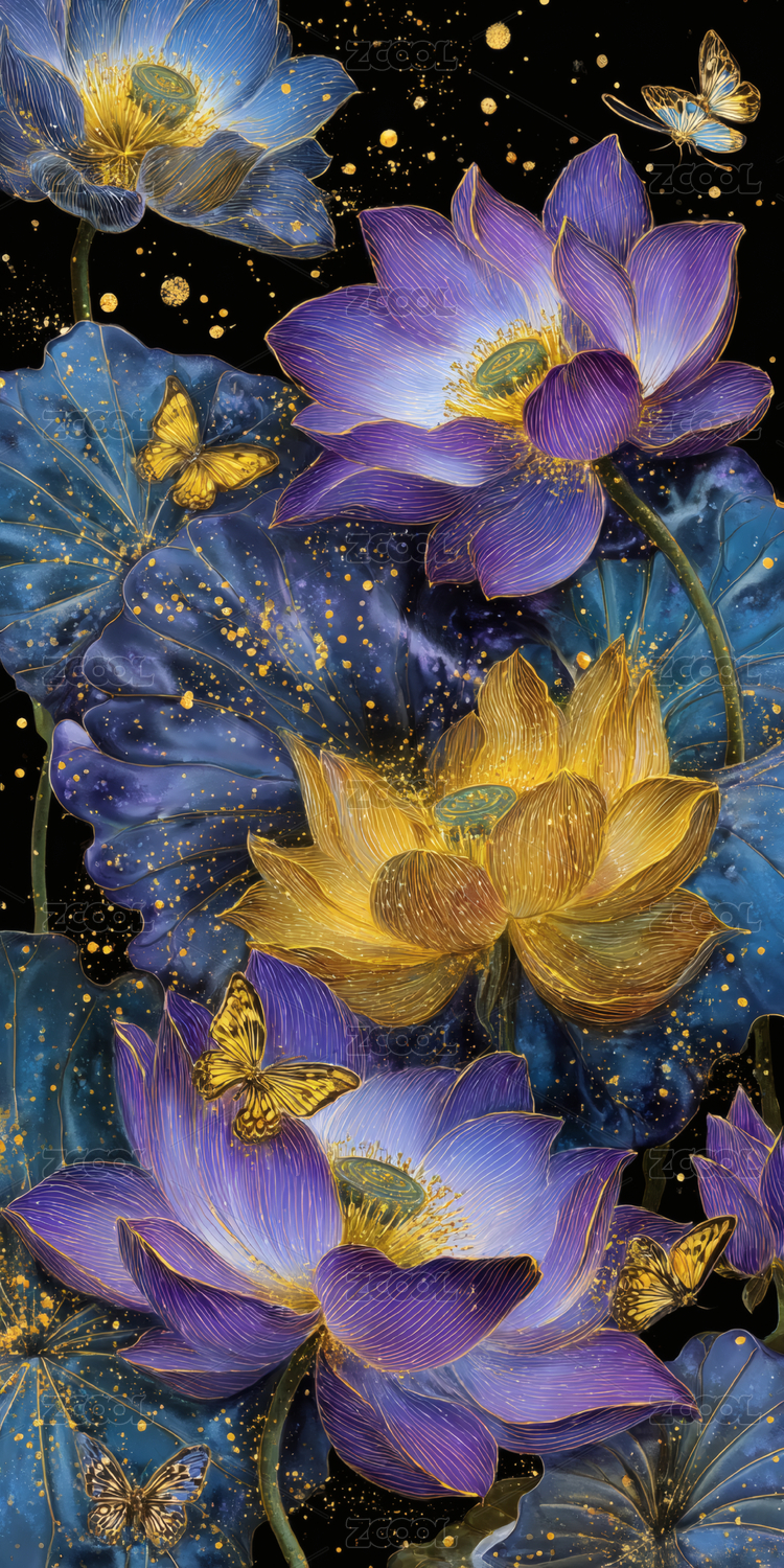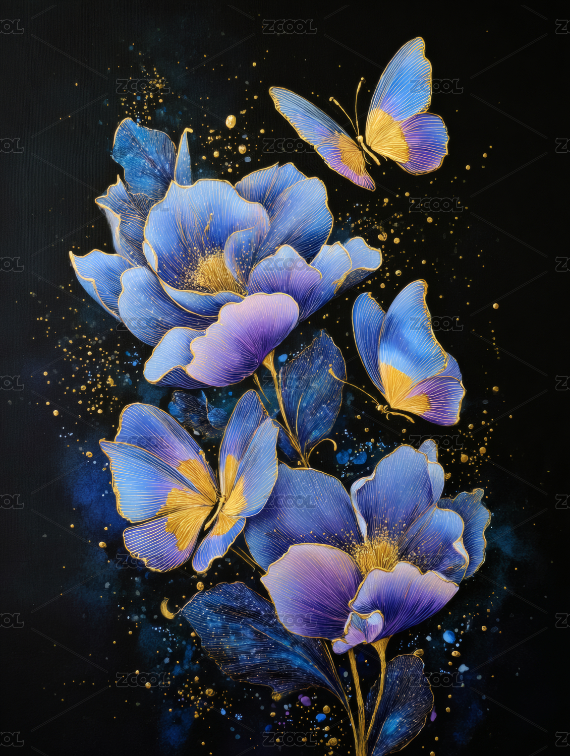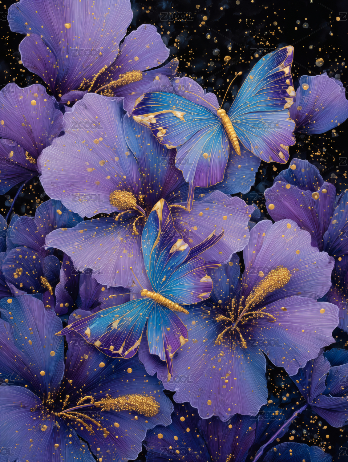 点缀,金色,粒子,鲜花,植物,盛开,动物,彩色,紫色,蓝色