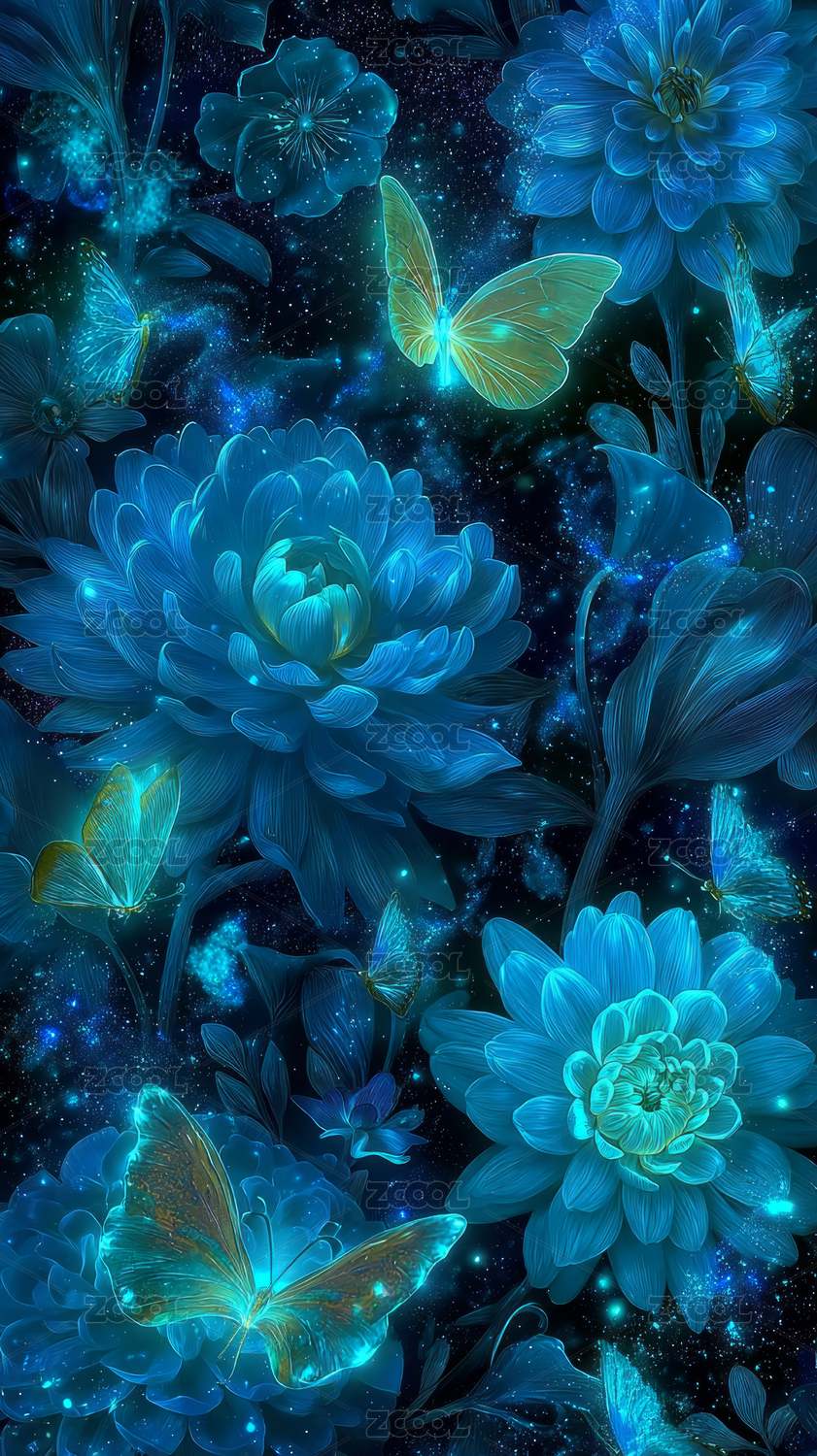 蓝蝶逐星芒,幻翼缠光漫舞清宵