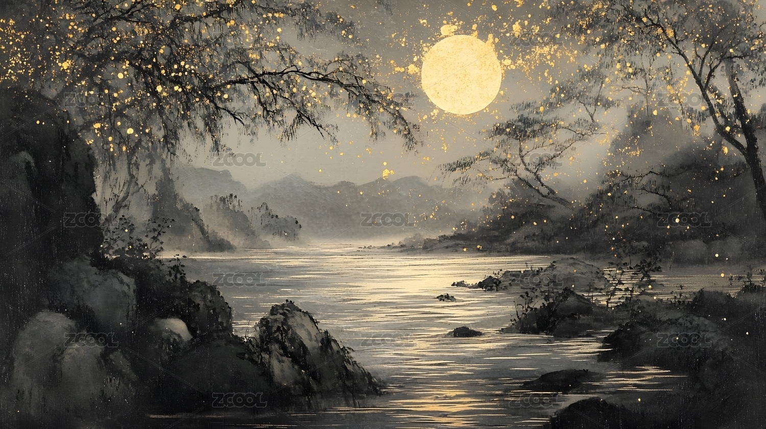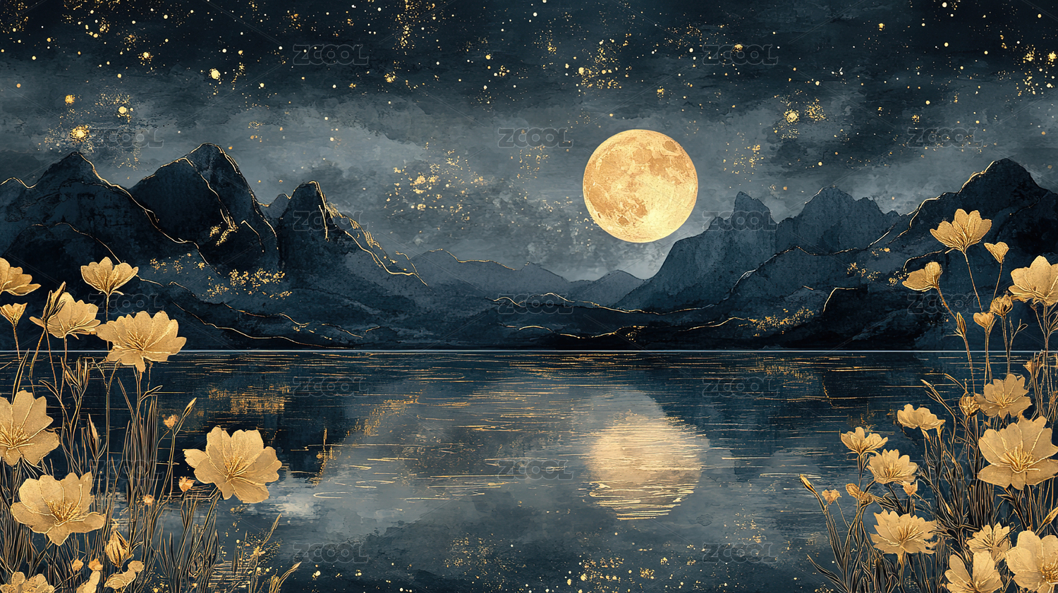 秋季,秋天,季节,中秋,中秋节,月亮,满月,圆月,夜景,山脉