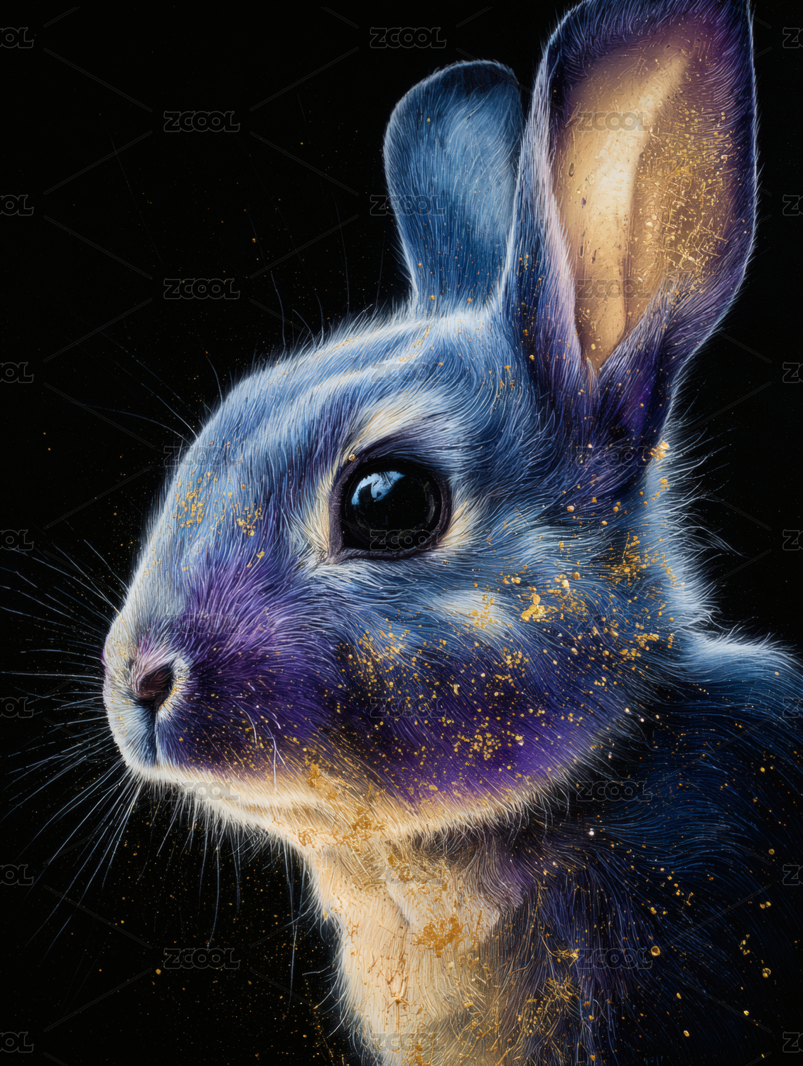 点缀,金色,粒子,紫色,蓝色,兔子,动物,可爱,特写,毛茸茸