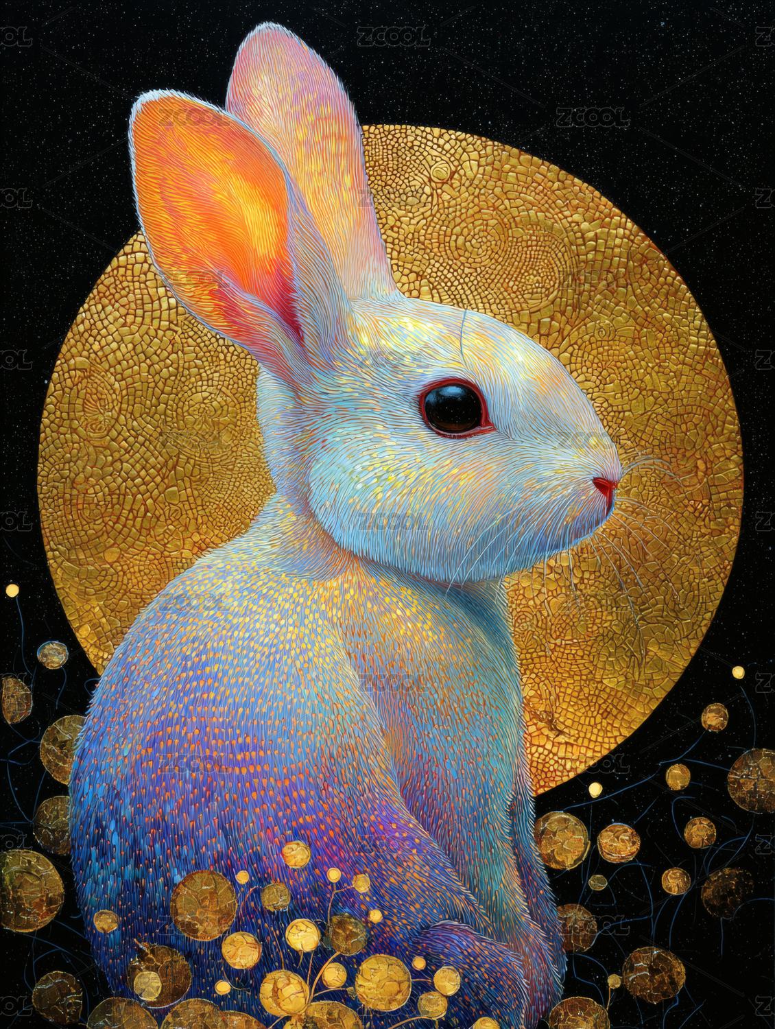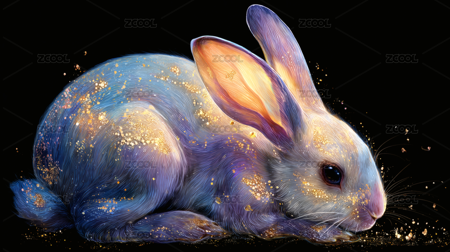 点缀着金色粒子的兔子