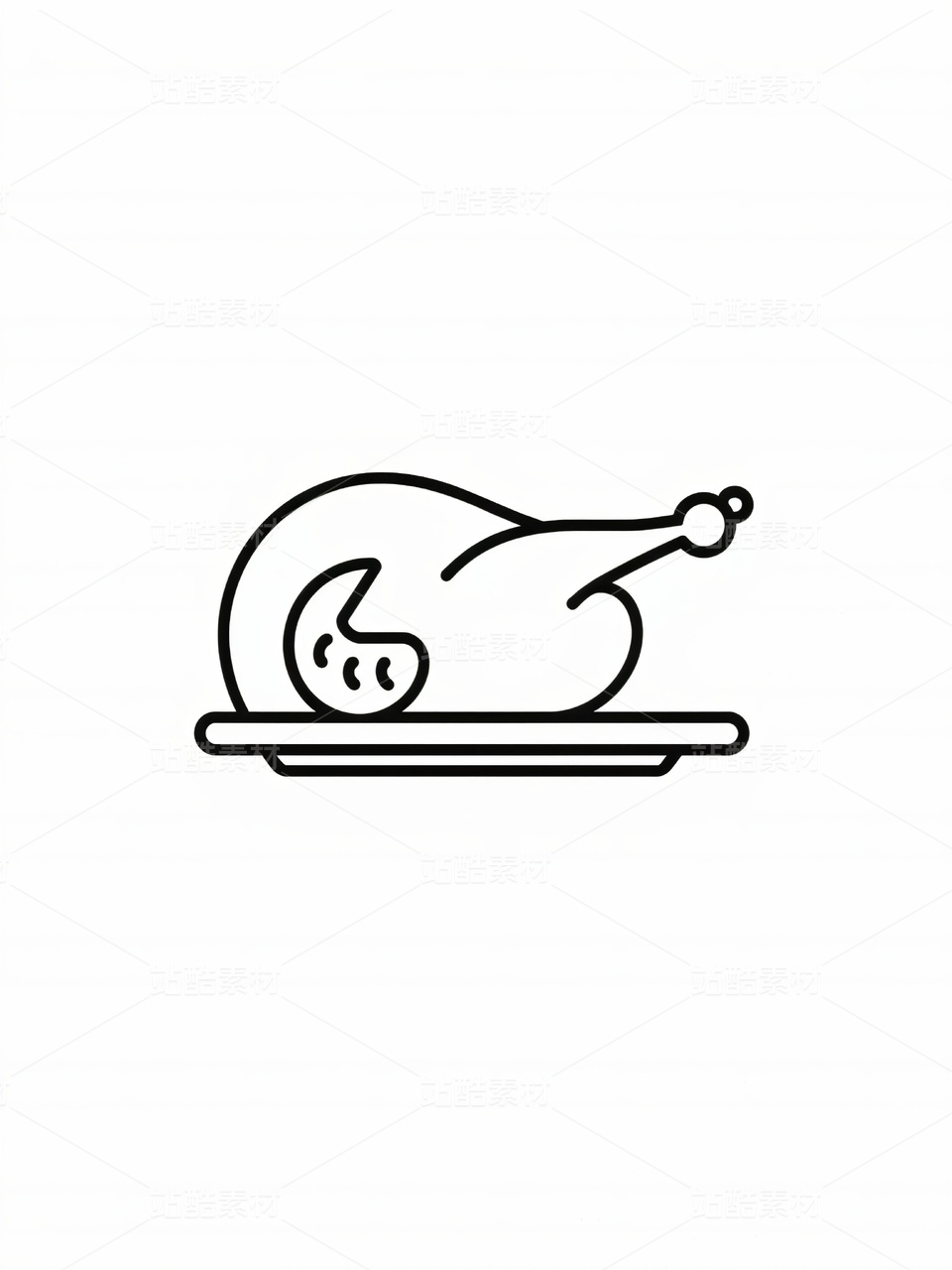 线描风格一盘烤鸡鸡肉美食PNG免抠素材
