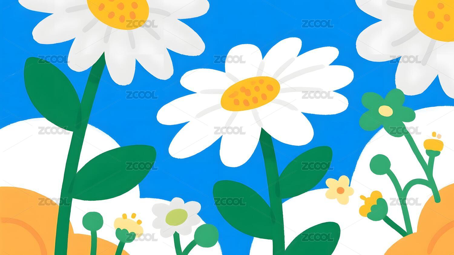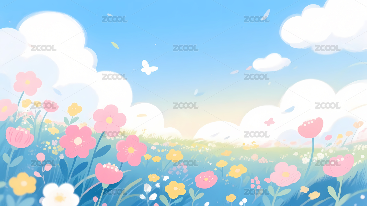 蓝色,粉色,背景,清新,花朵,天空,白色,黄色,白云,飞舞