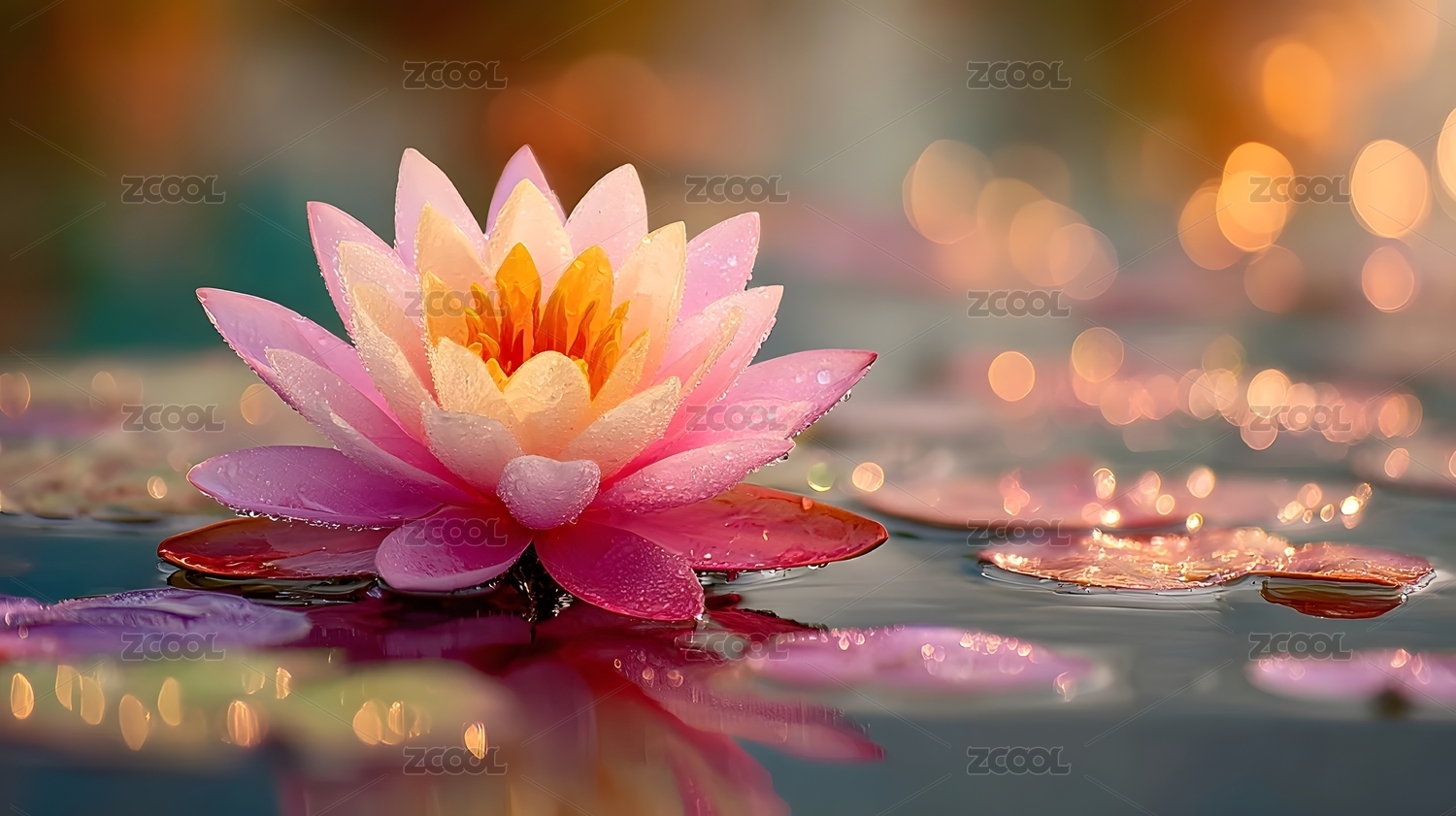 背景,柔和,淡蓝,光斑,宁静,紫色,莲花,水面,祥和,漂浮