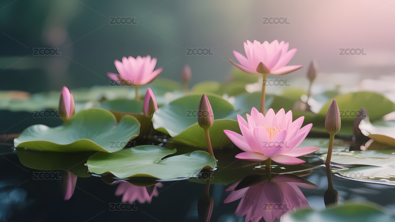 柔和粉红莲花水面