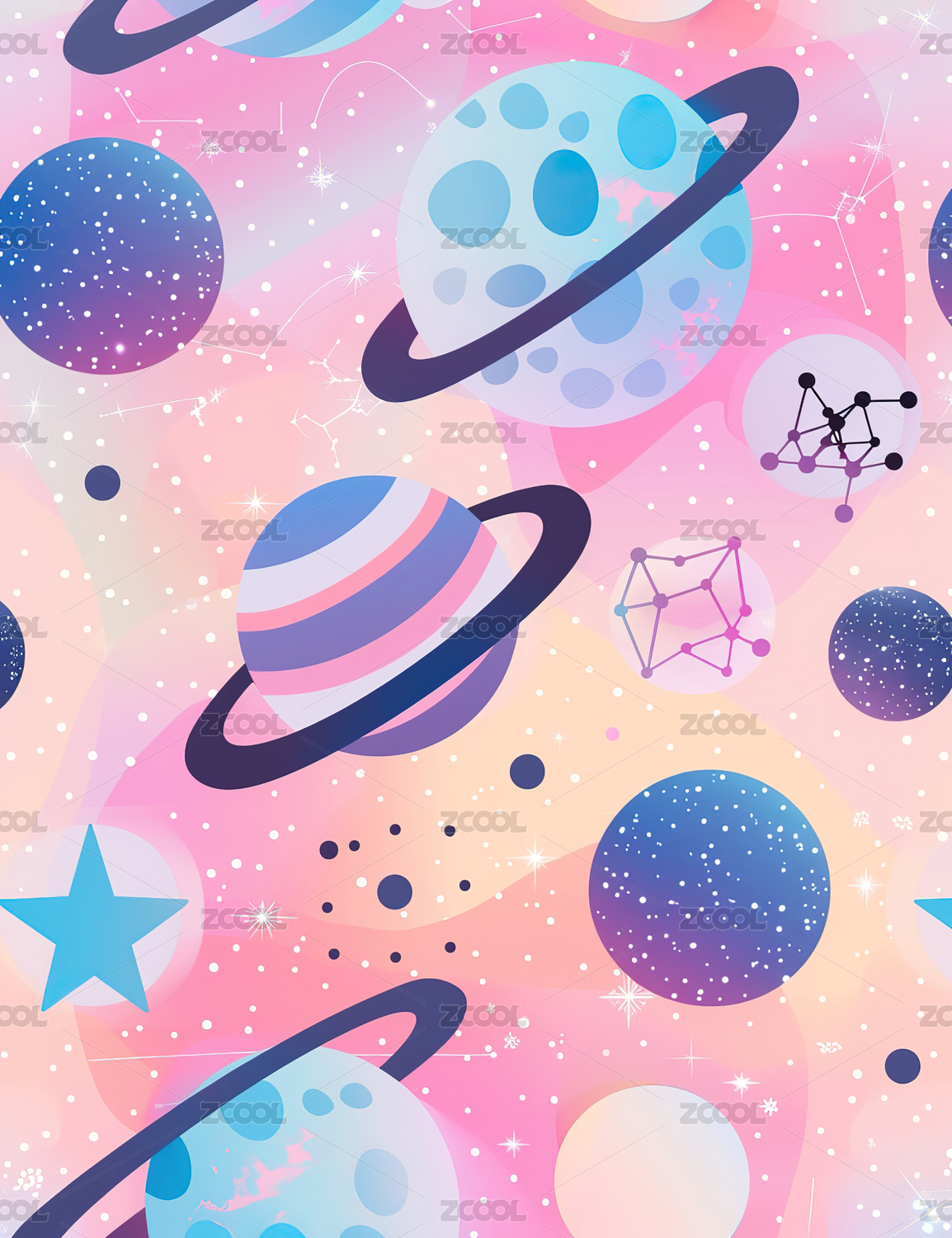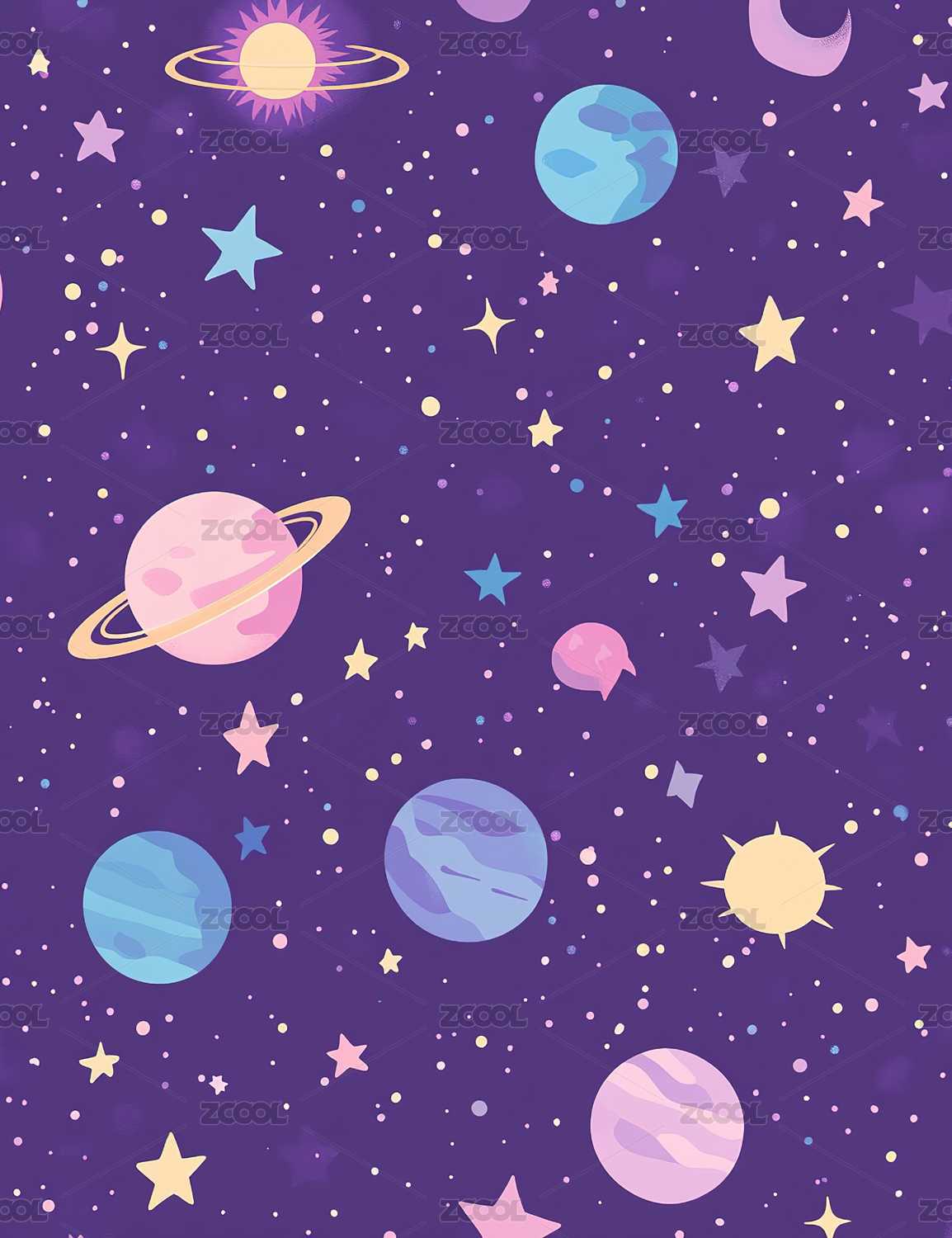 梦幻星空夜空四方连续循环无缝拼接图案背景