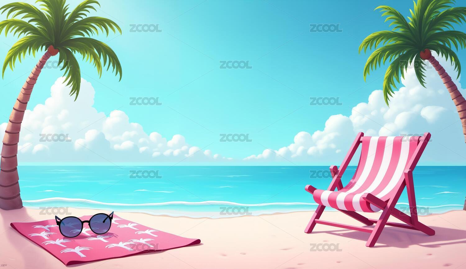 粉色沙滩伞椅夏日海景