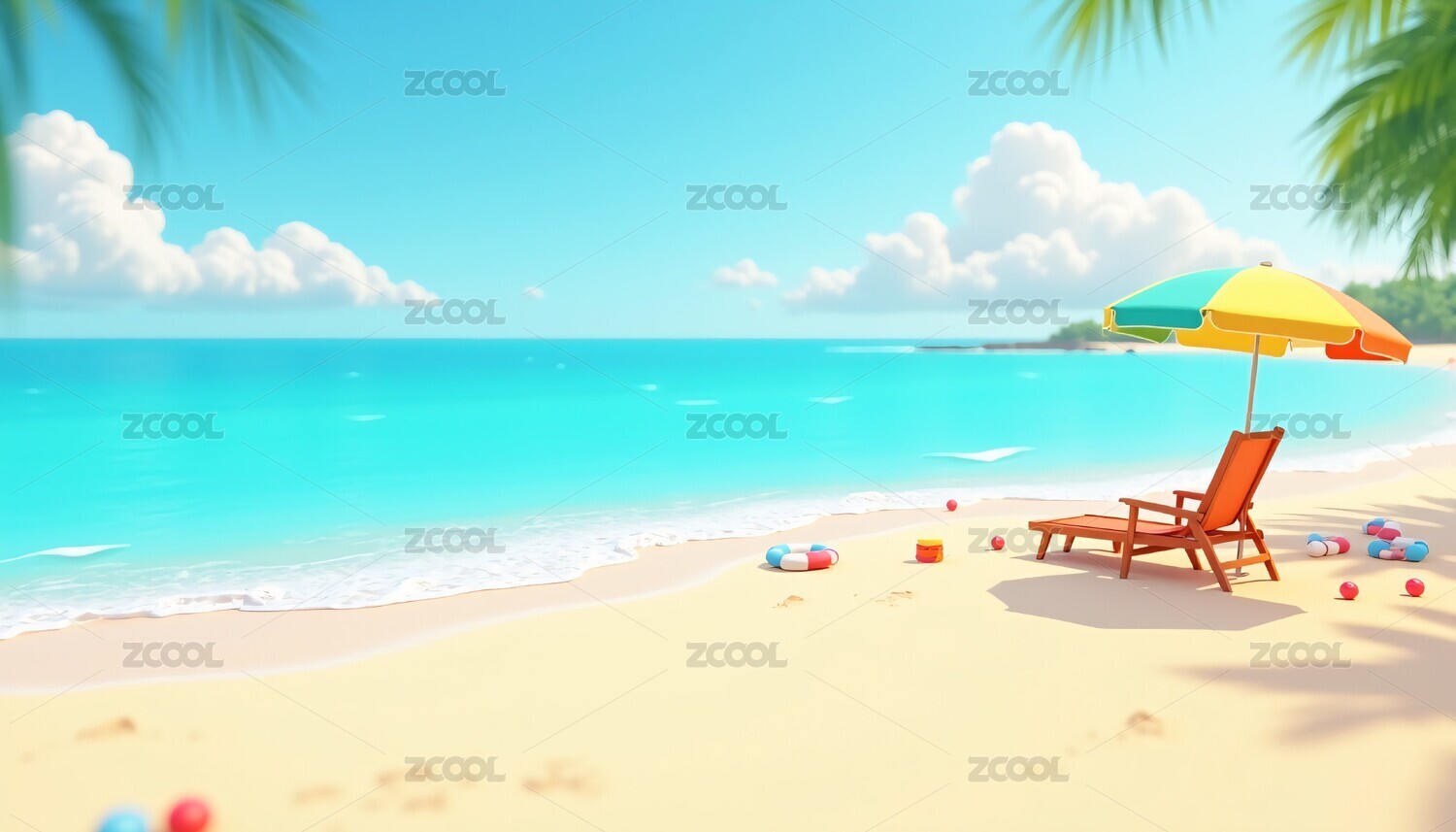 3D夏日海边沙滩度假出游场景