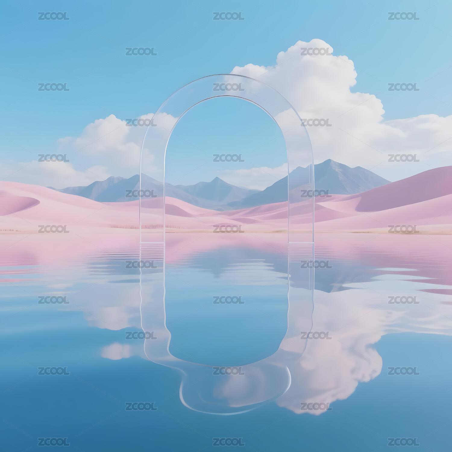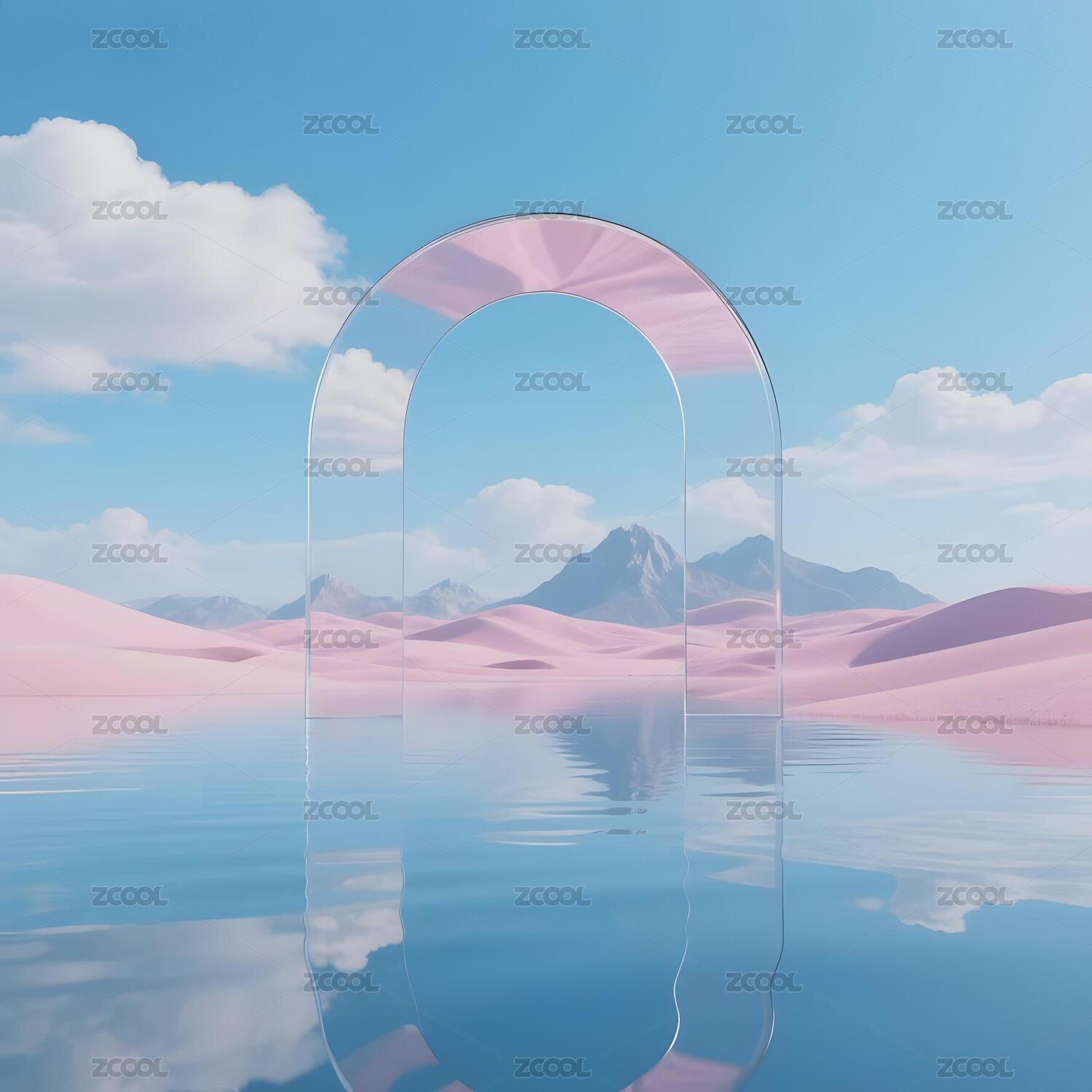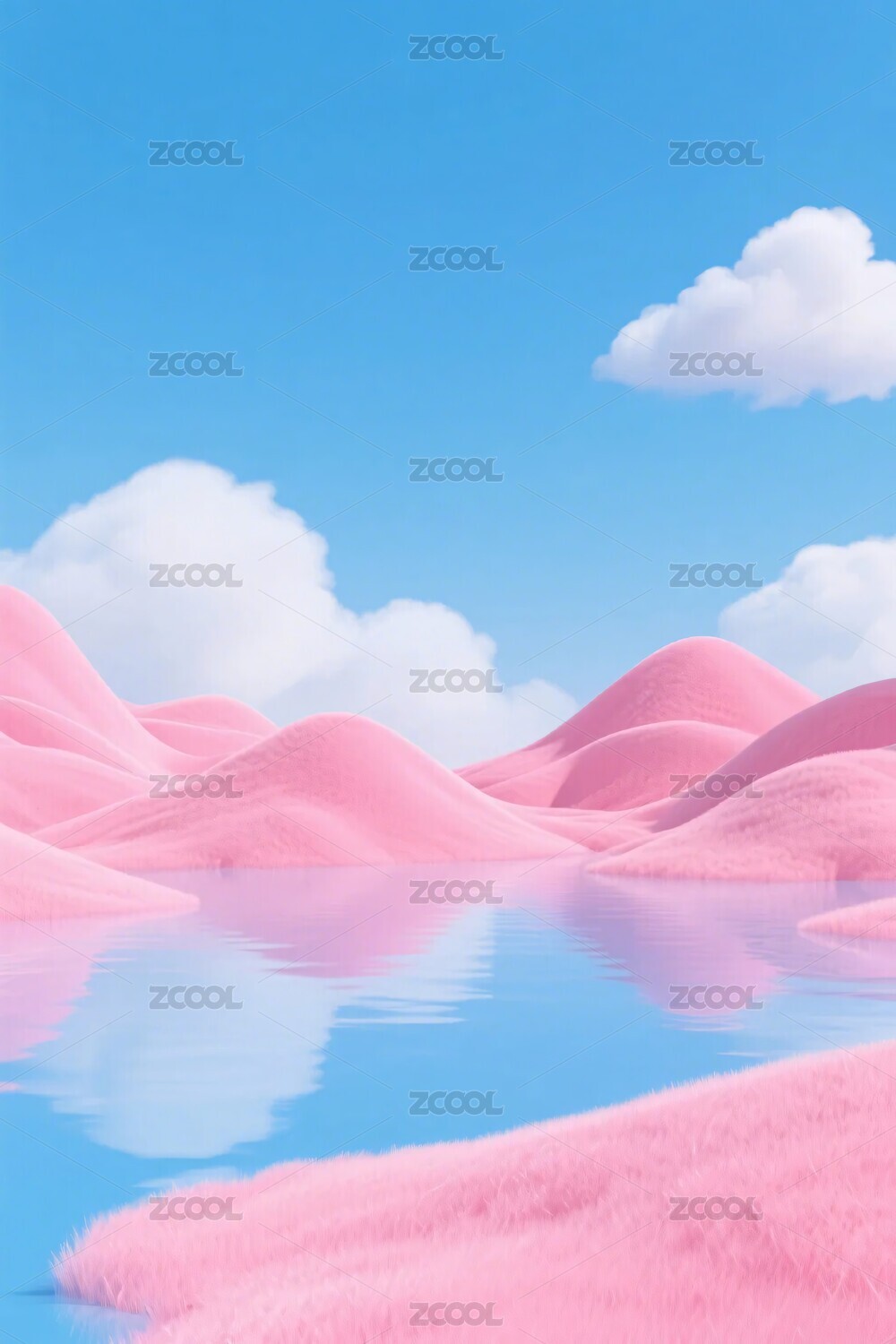 沙滩,自然,粉色,蓝天,白云,艺术,场景,色彩,设计,梦幻