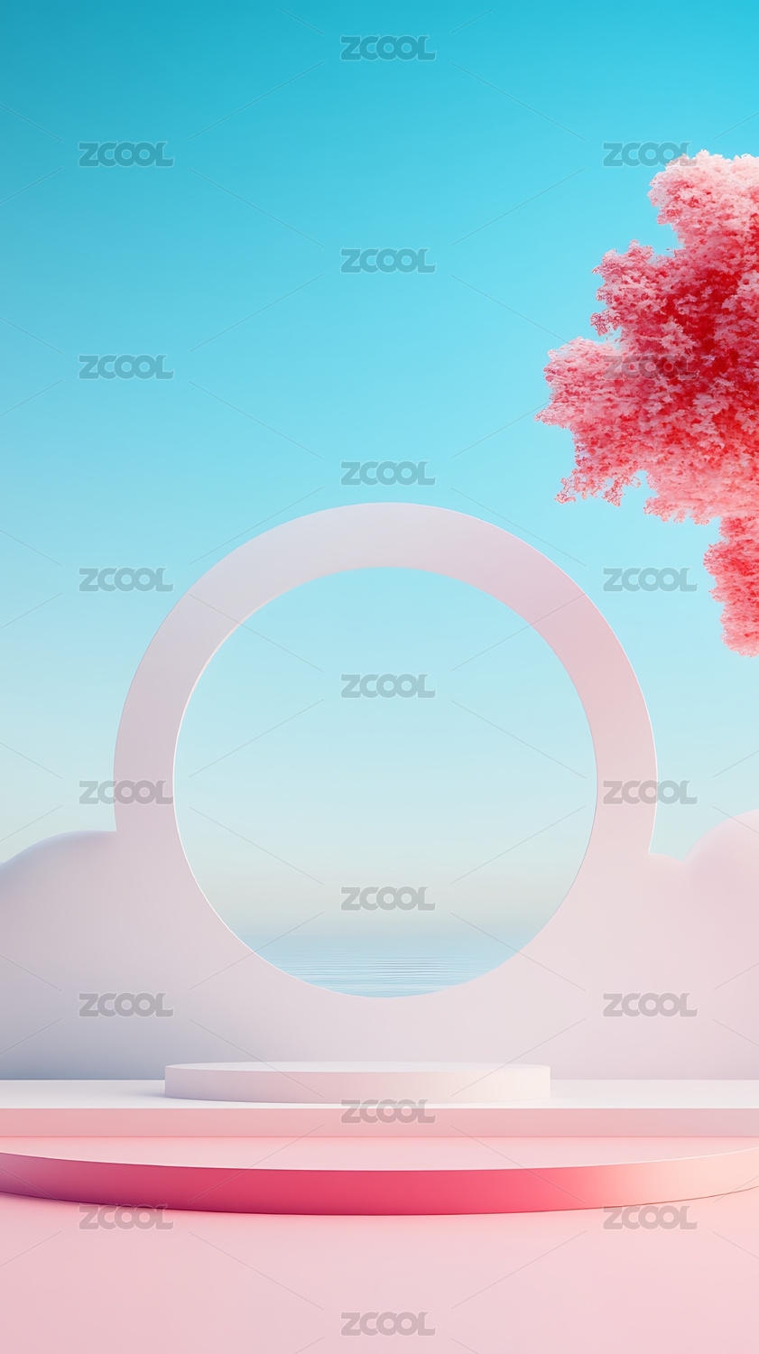 极简风水面粉色山峰电商产品展台