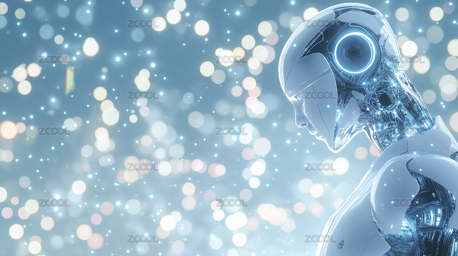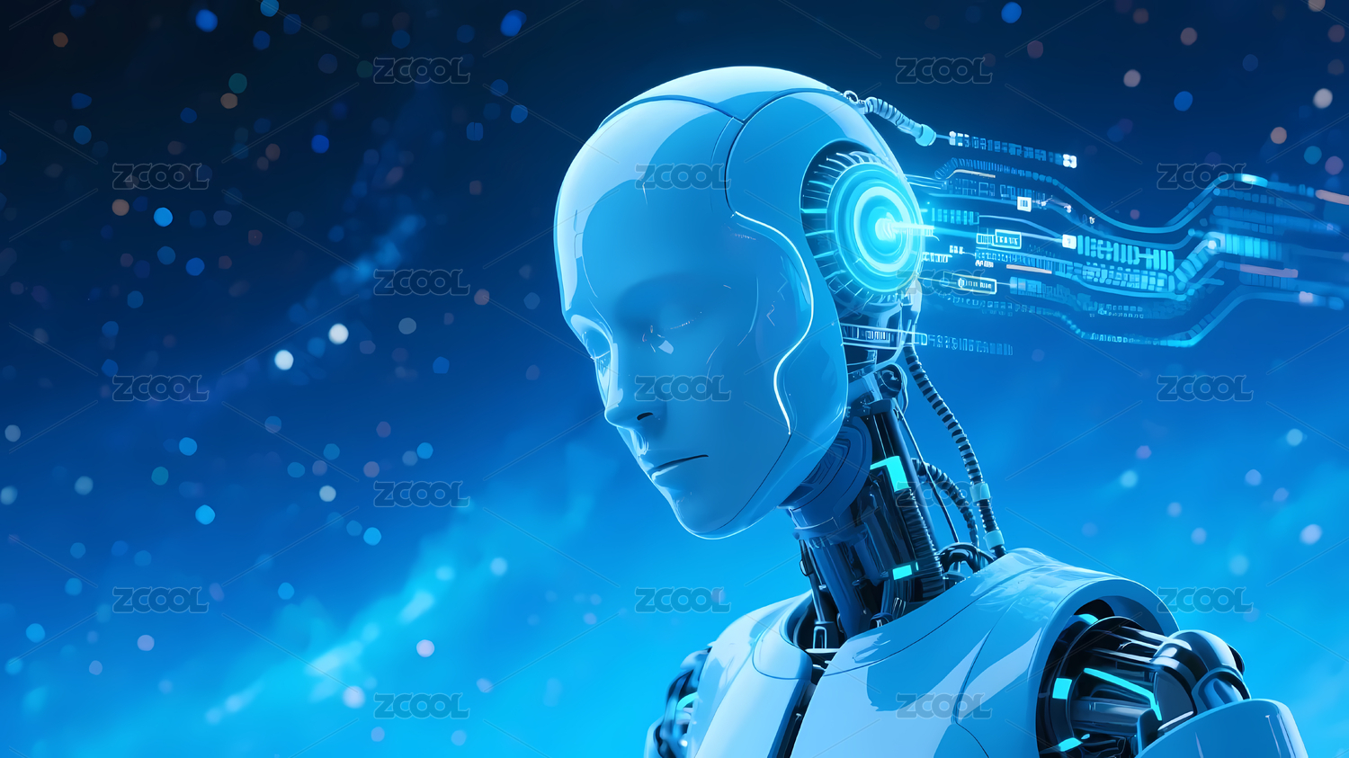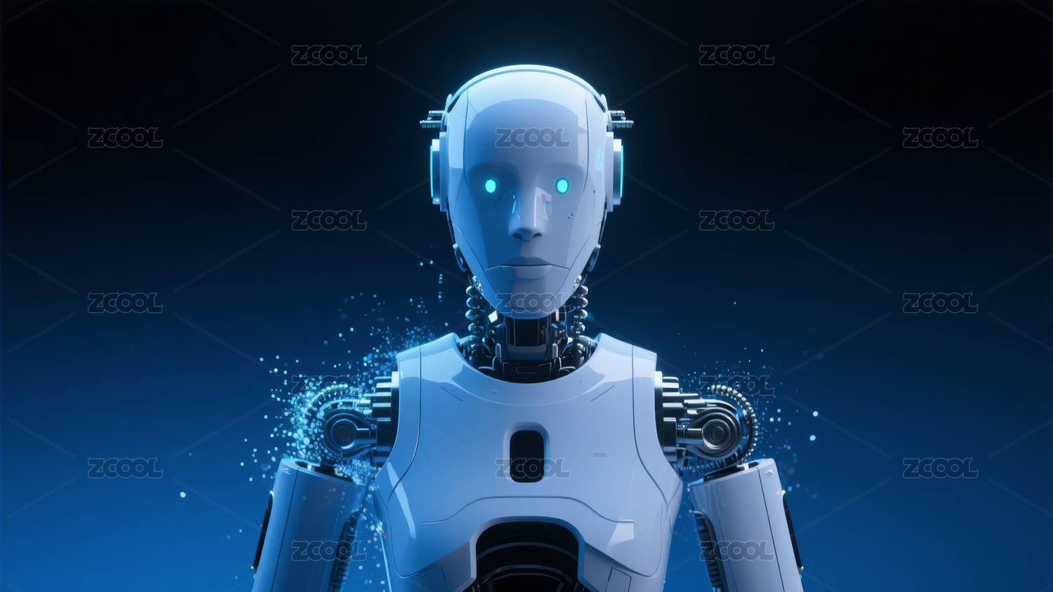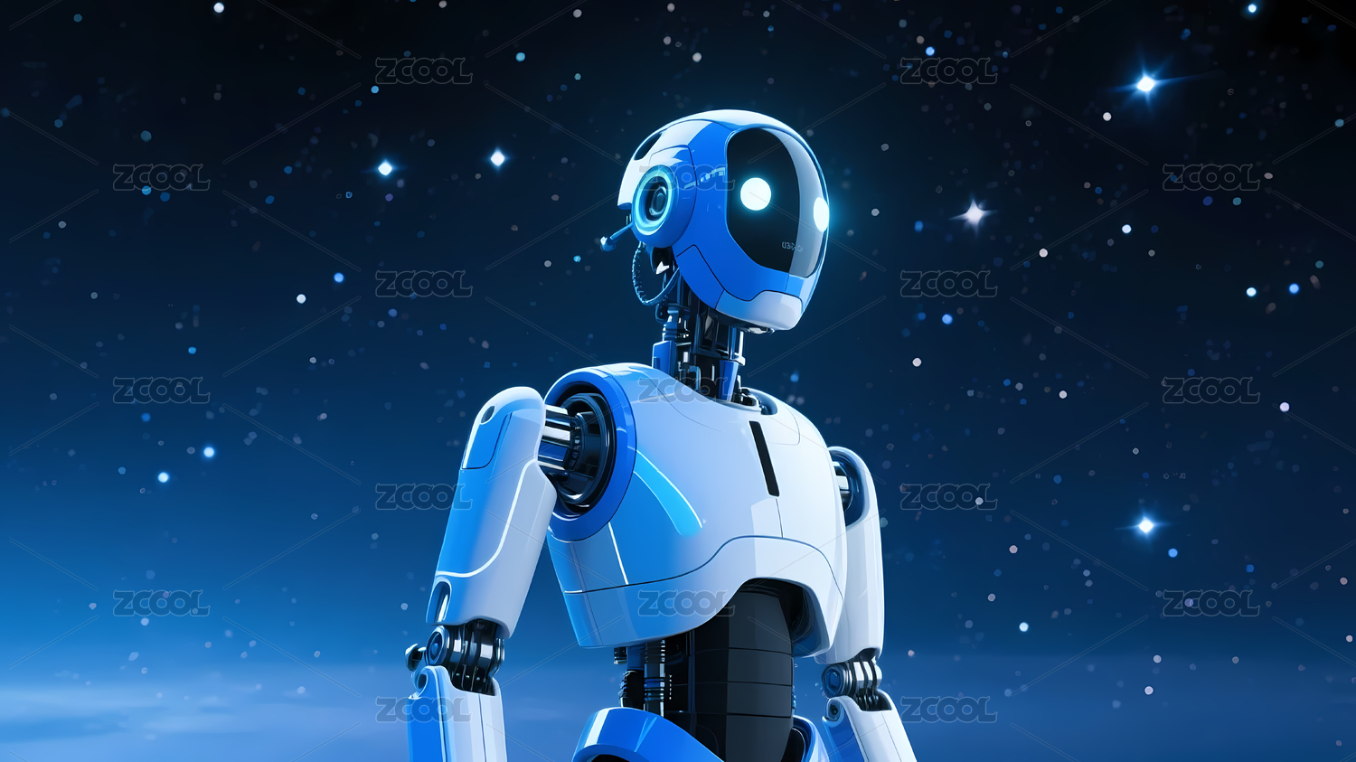 蓝色,背景,机器人,发光,眼睛,四肢,星空,星星,深邃,黑色