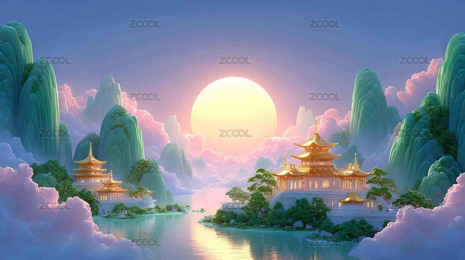 仙境宫殿日出美景