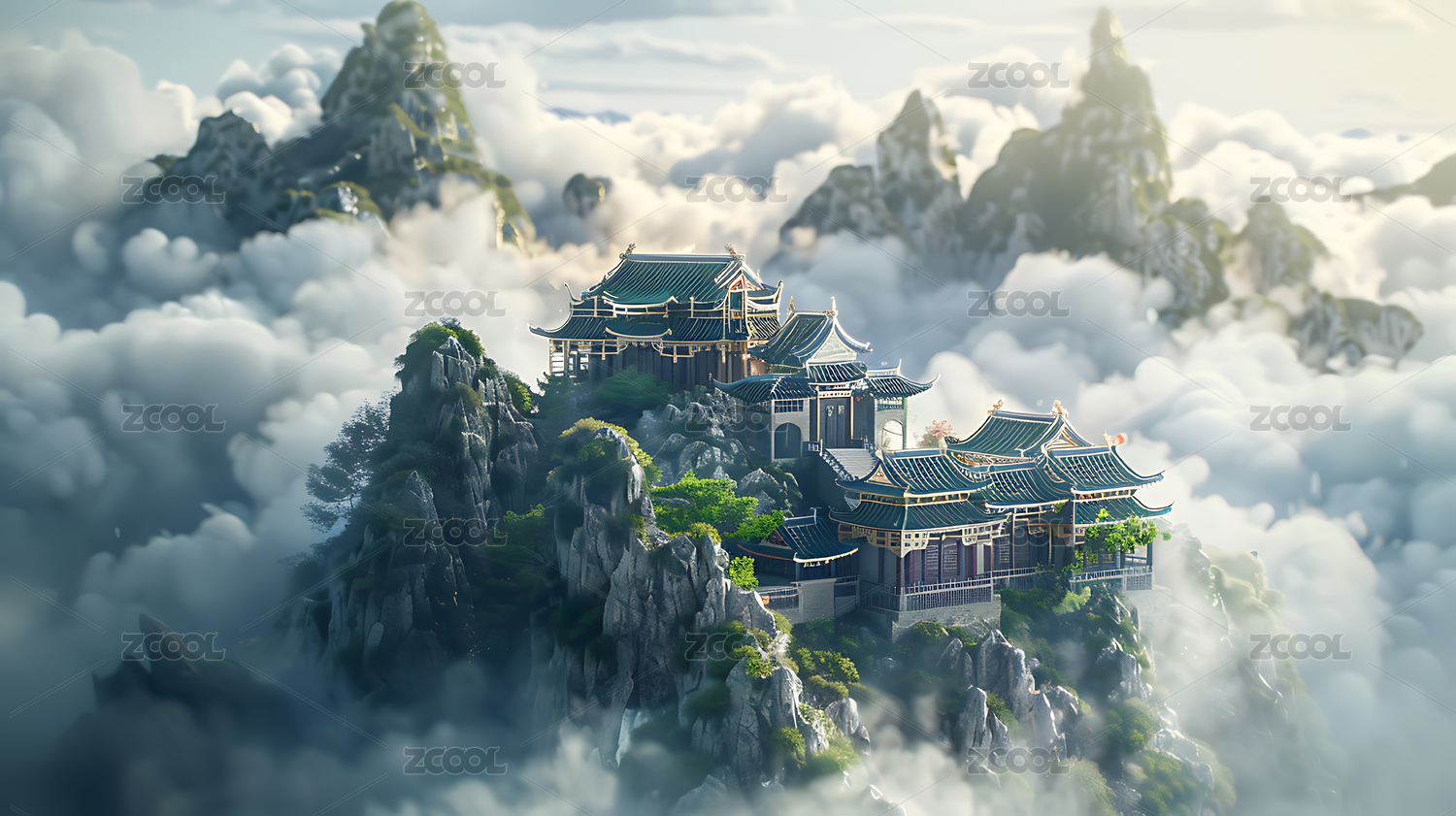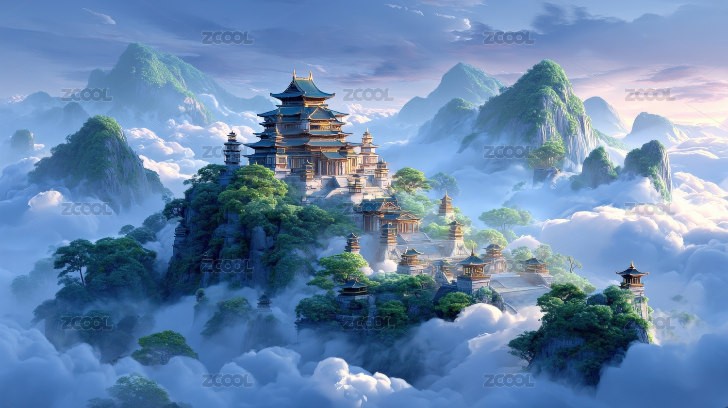 云雾缭绕的东方宫殿