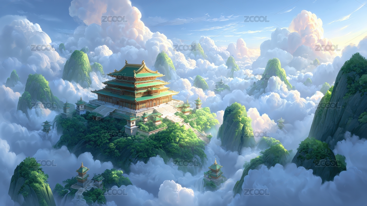 神话仙境建筑群场景插画