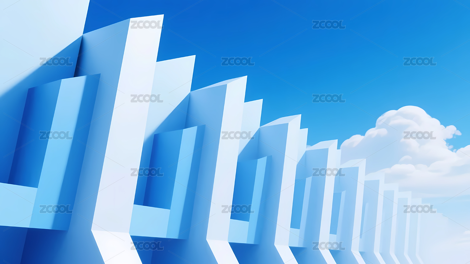 建筑,蓝天,天空,抽象,几何,极简主义,云朵,月亮,渲染