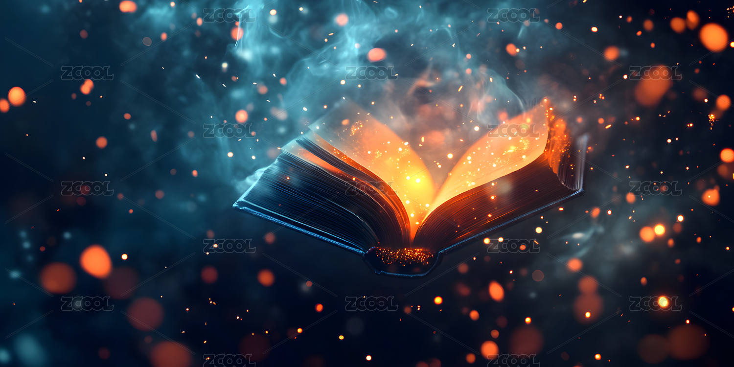 背景,蓝色,深蓝,线条,书本,打开,金色,光点,流动,梦幻