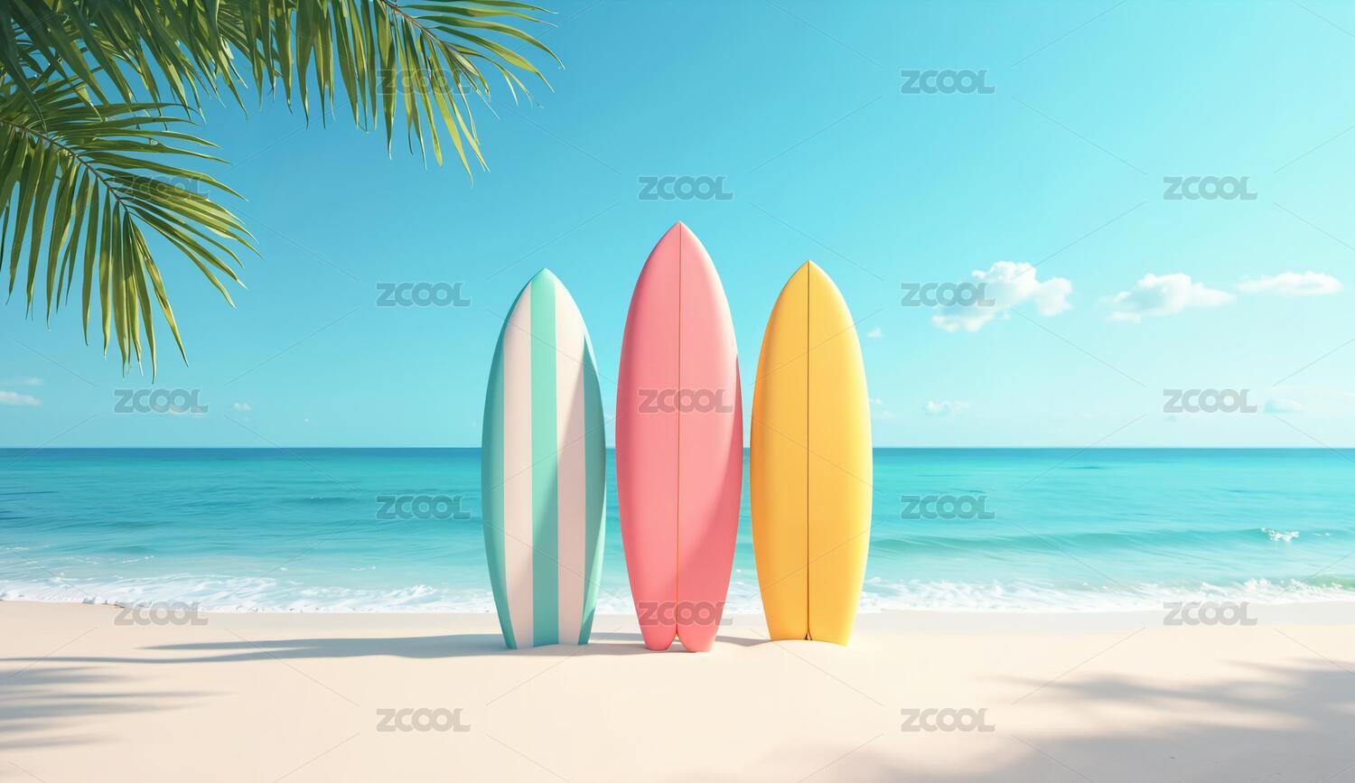夏天海边冲浪度假小暑节气户外运动场景插画