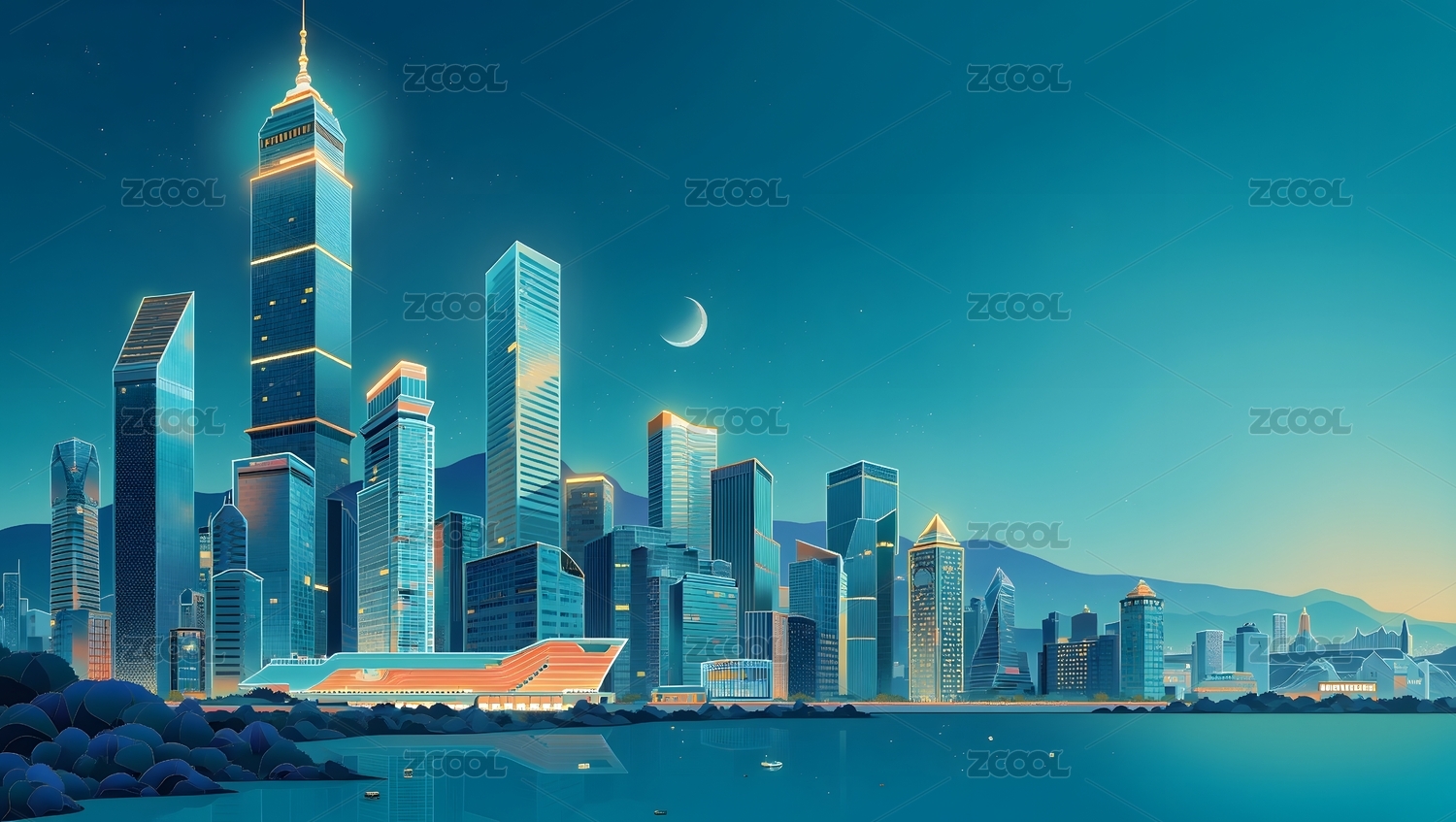 未来科技城市商业插画