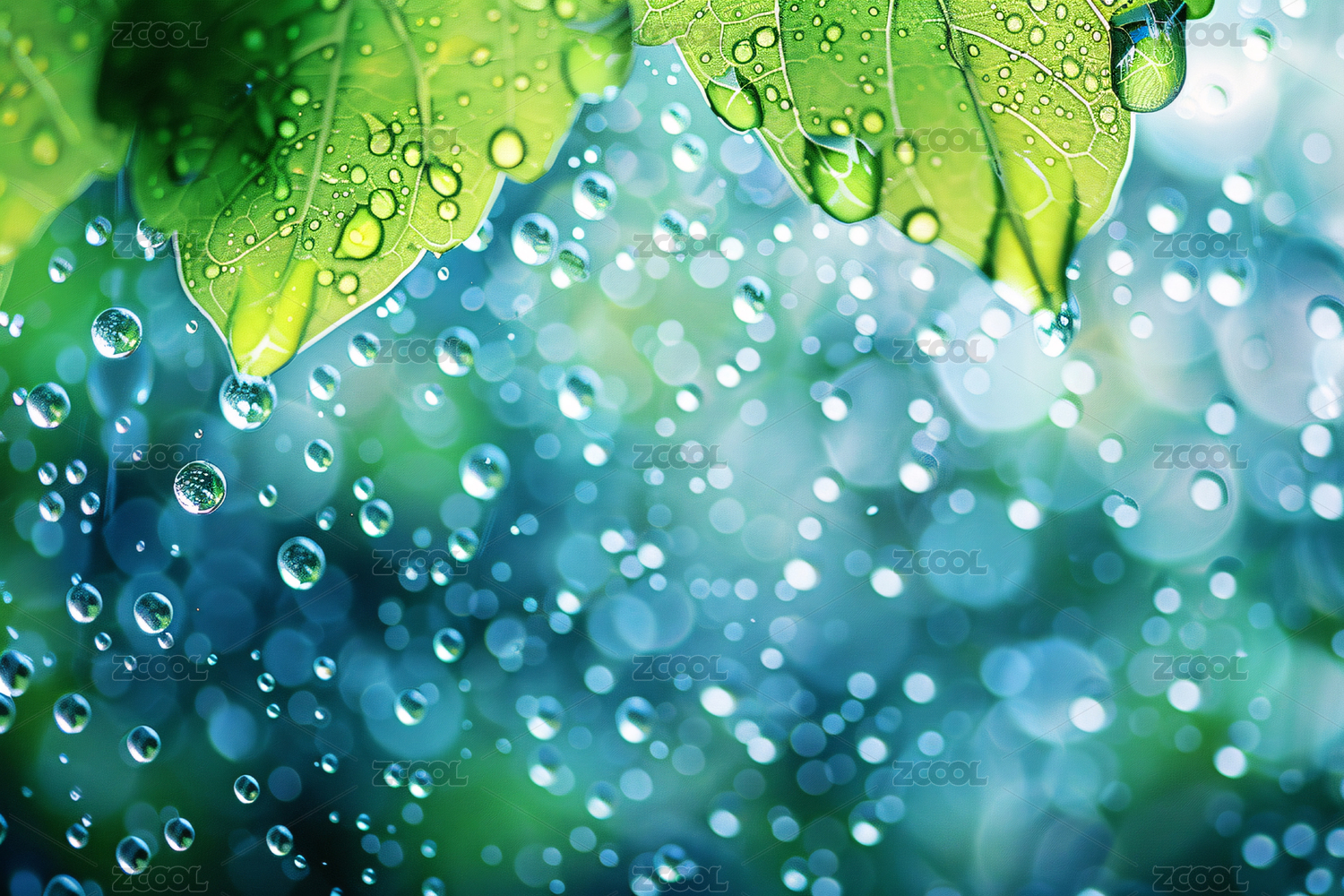 雨滴与绿叶