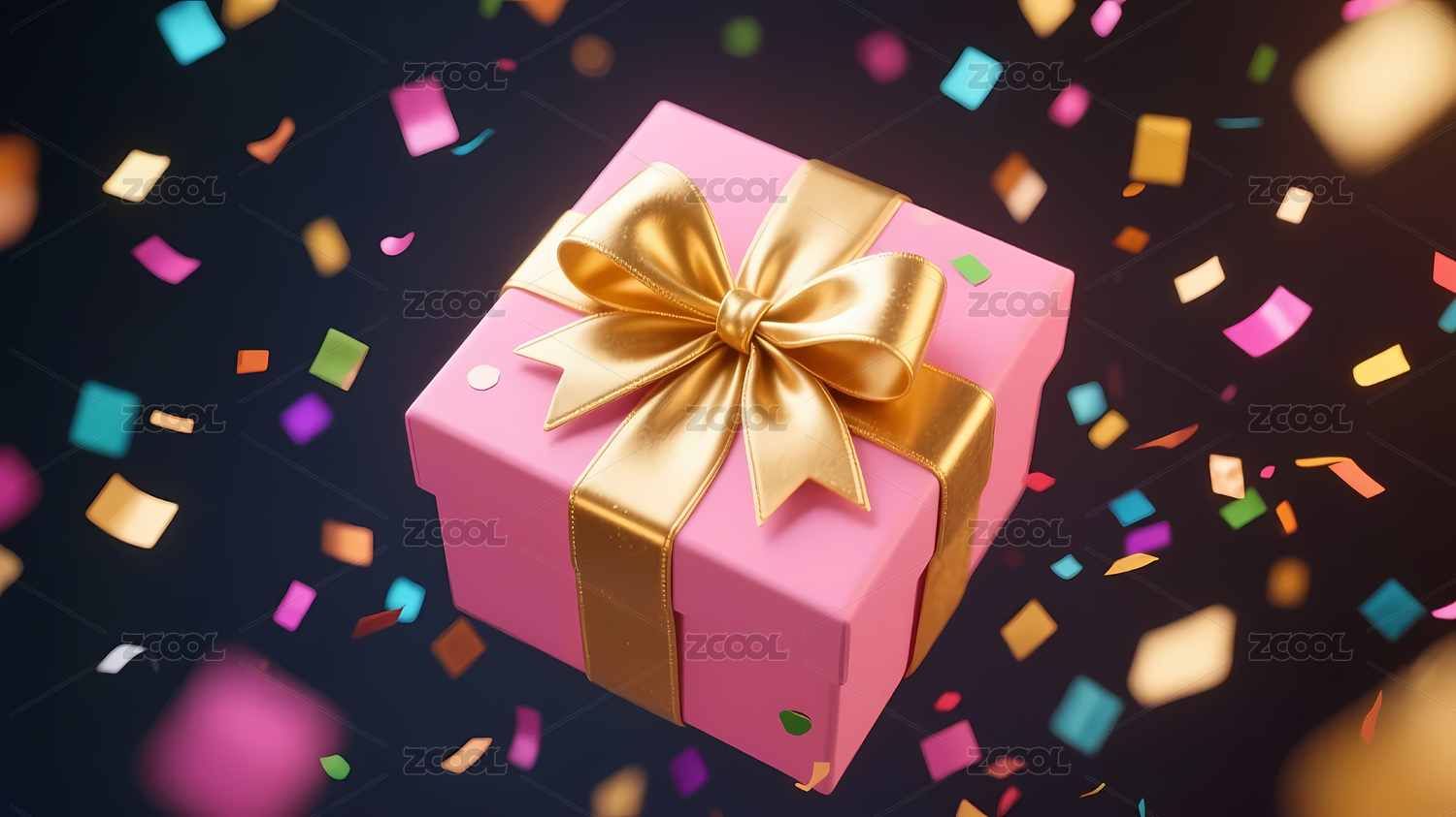 粉色,金色,深色,丝带,礼物盒,蝴蝶结,彩色,纸屑,庆祝,喜庆