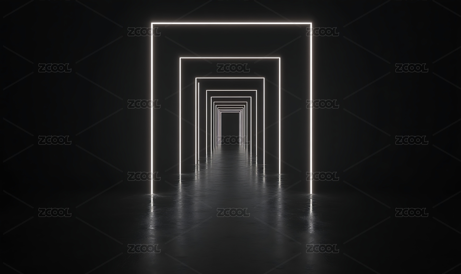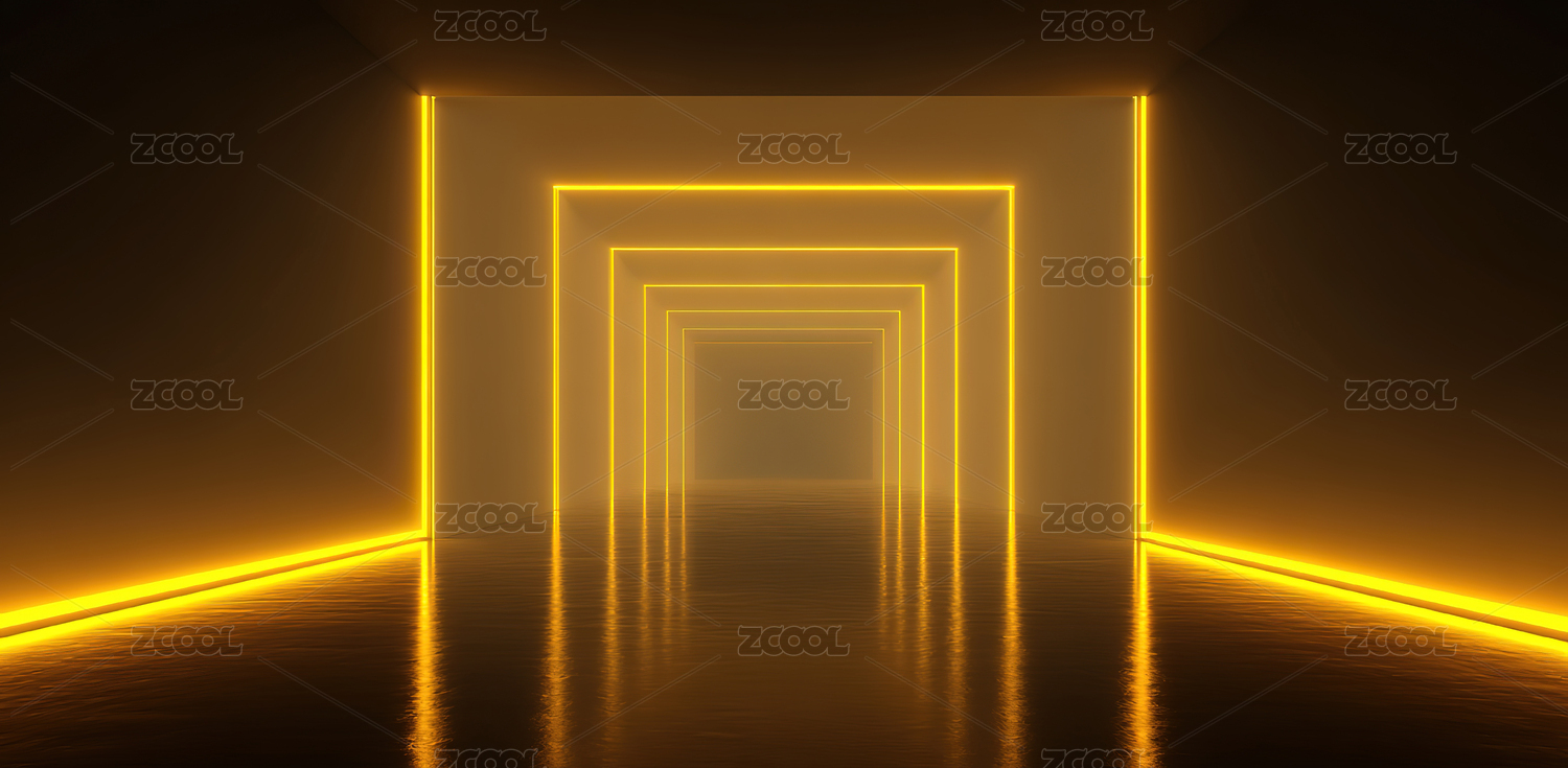 霓虹灯,黄色,未来,神秘,长廊,矩形框架,排列,墙壁,地面,深色