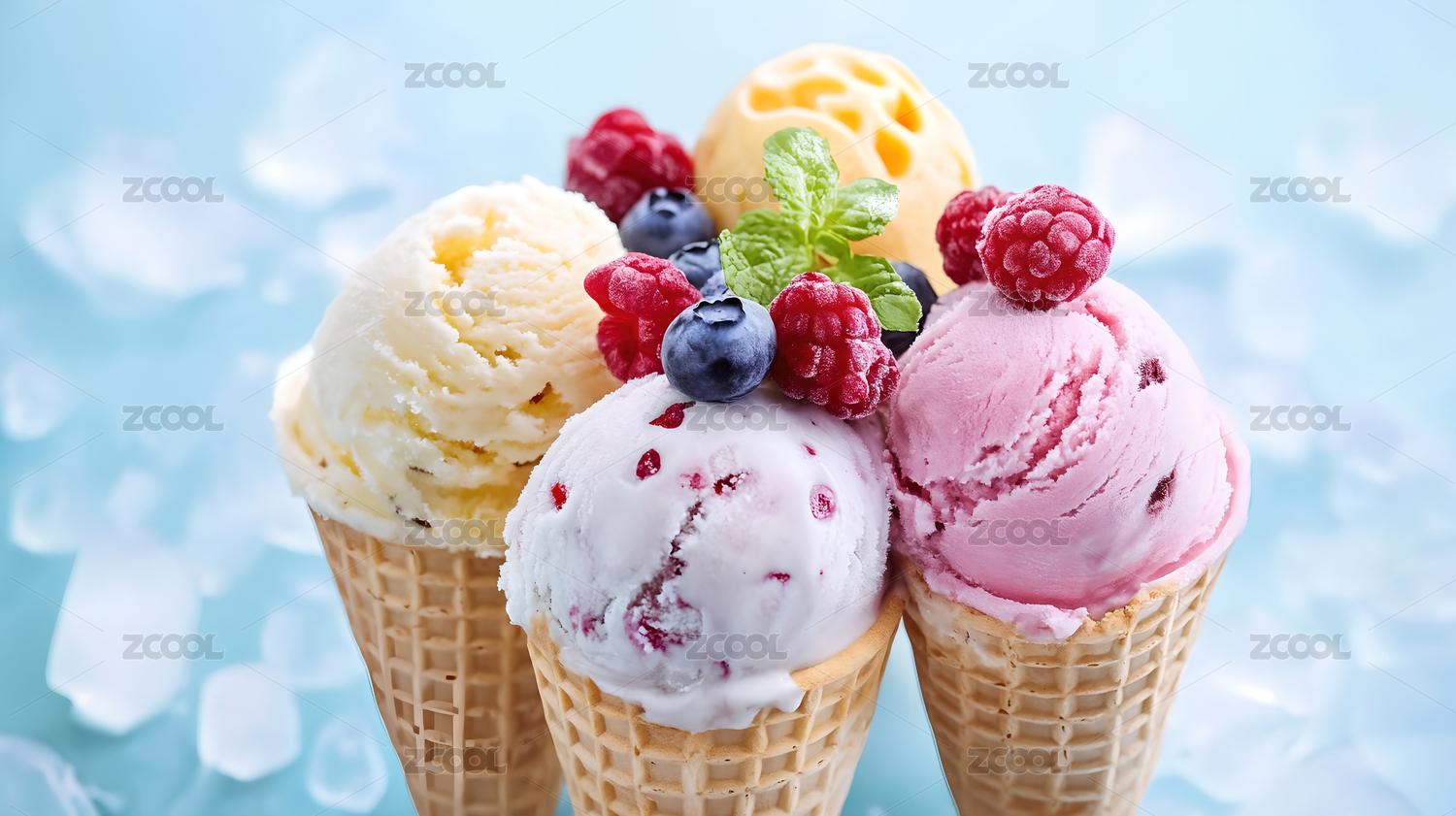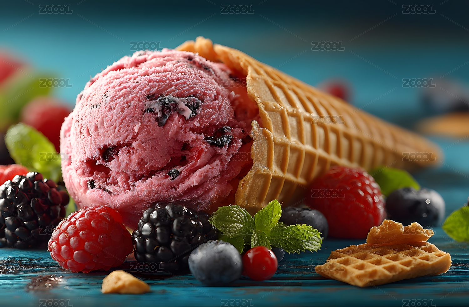 缤纷冰淇淋搭配新鲜莓果美味诱人