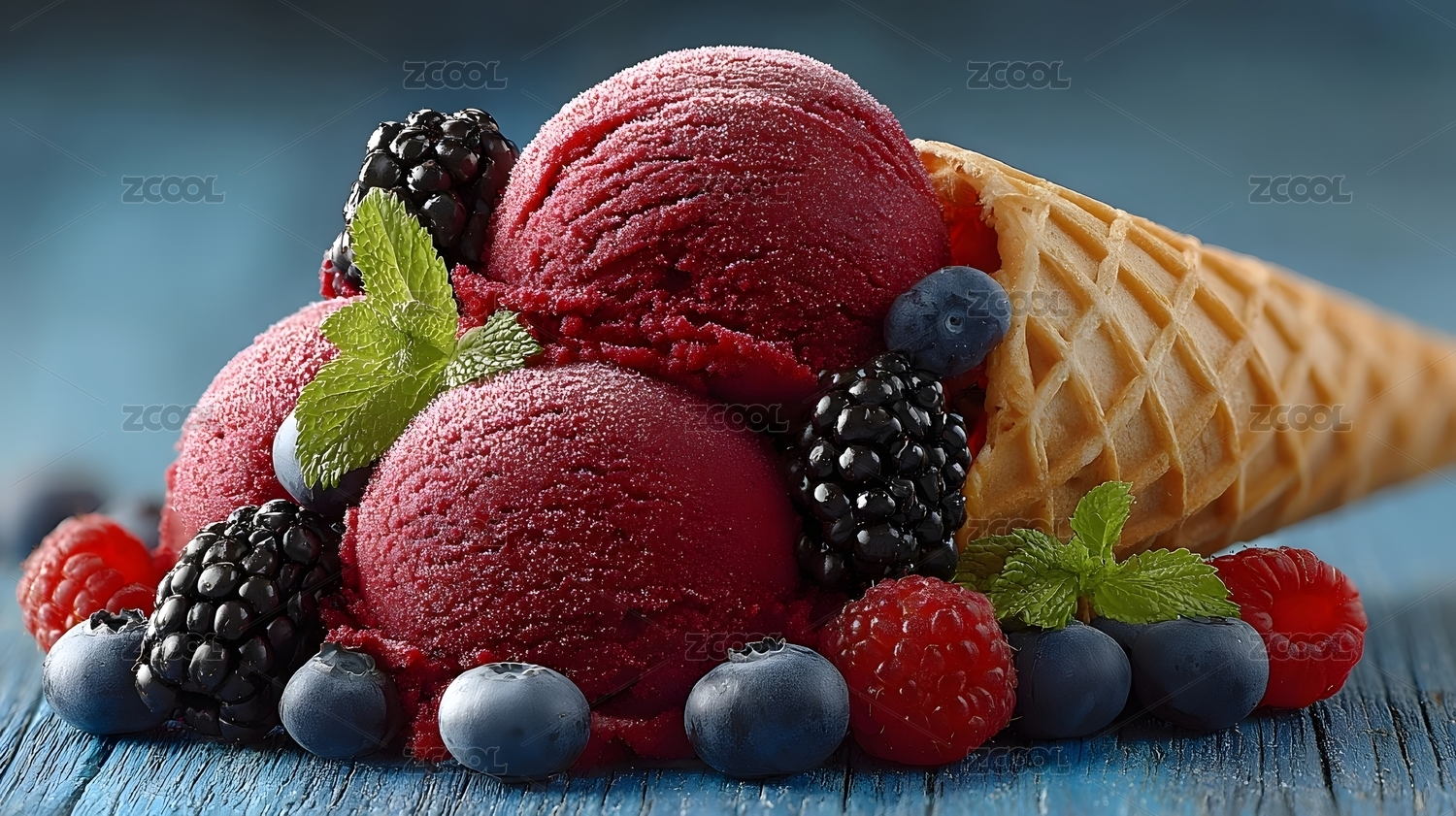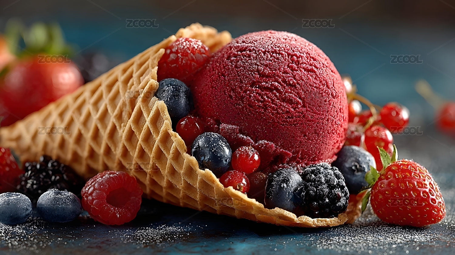 缤纷冰淇淋搭配新鲜莓果美味诱人