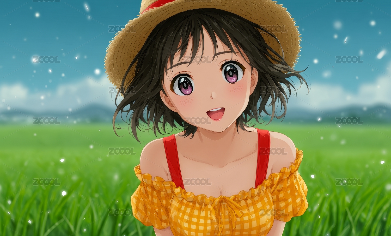 田野少女戴草帽