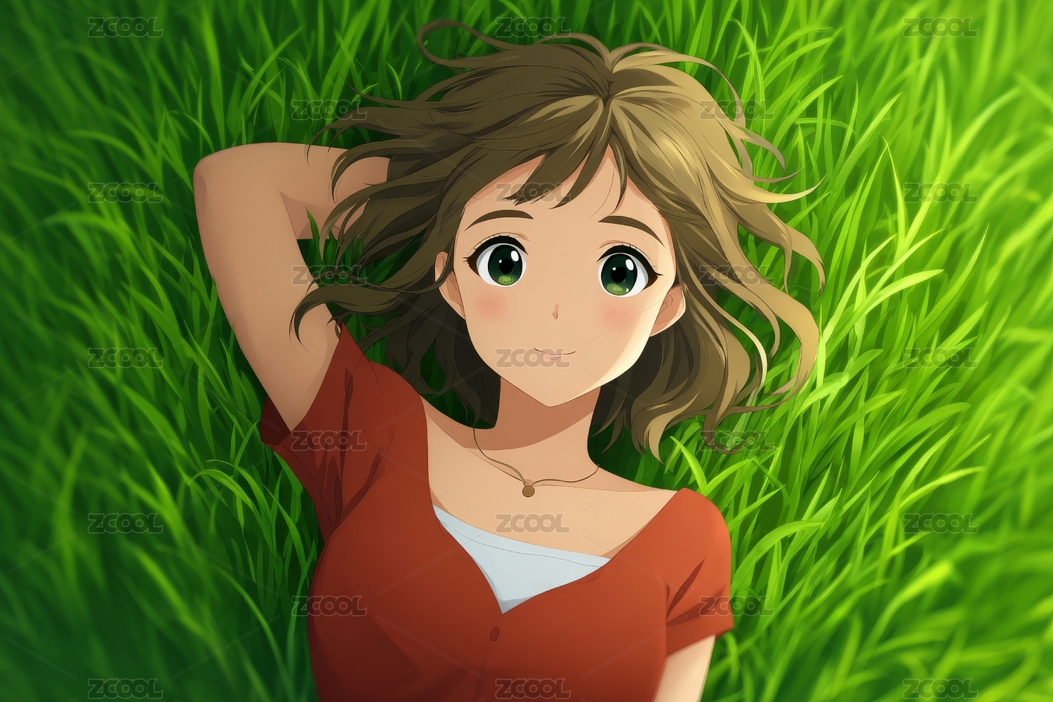 草地少女仰卧