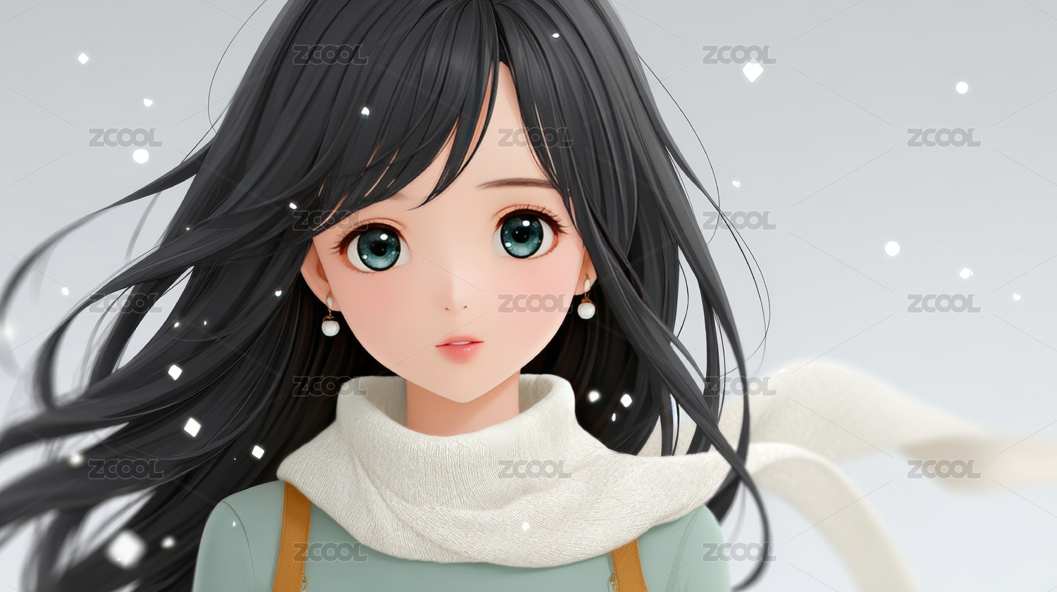 动漫少女雪中凝视
