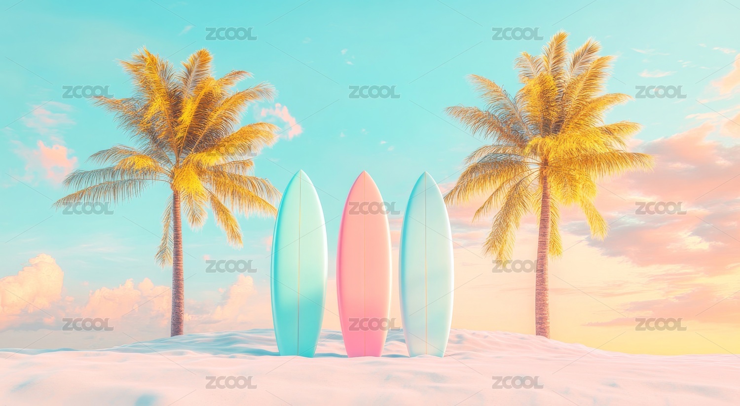 夏天海边冲浪度假小暑节气户外运动场景插画
