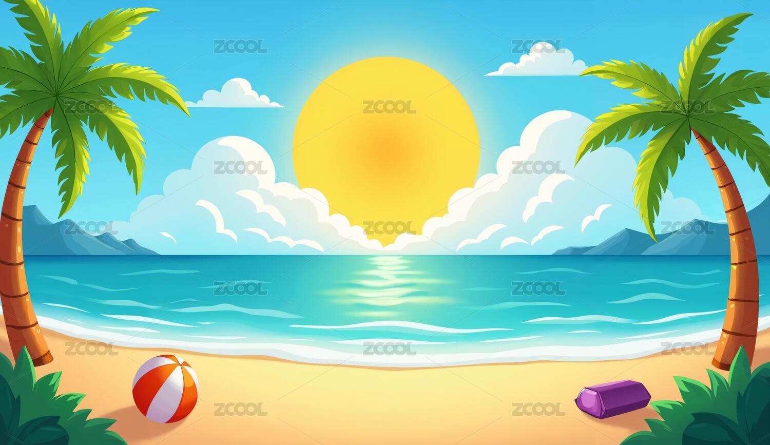 夏天沙滩渡假插画