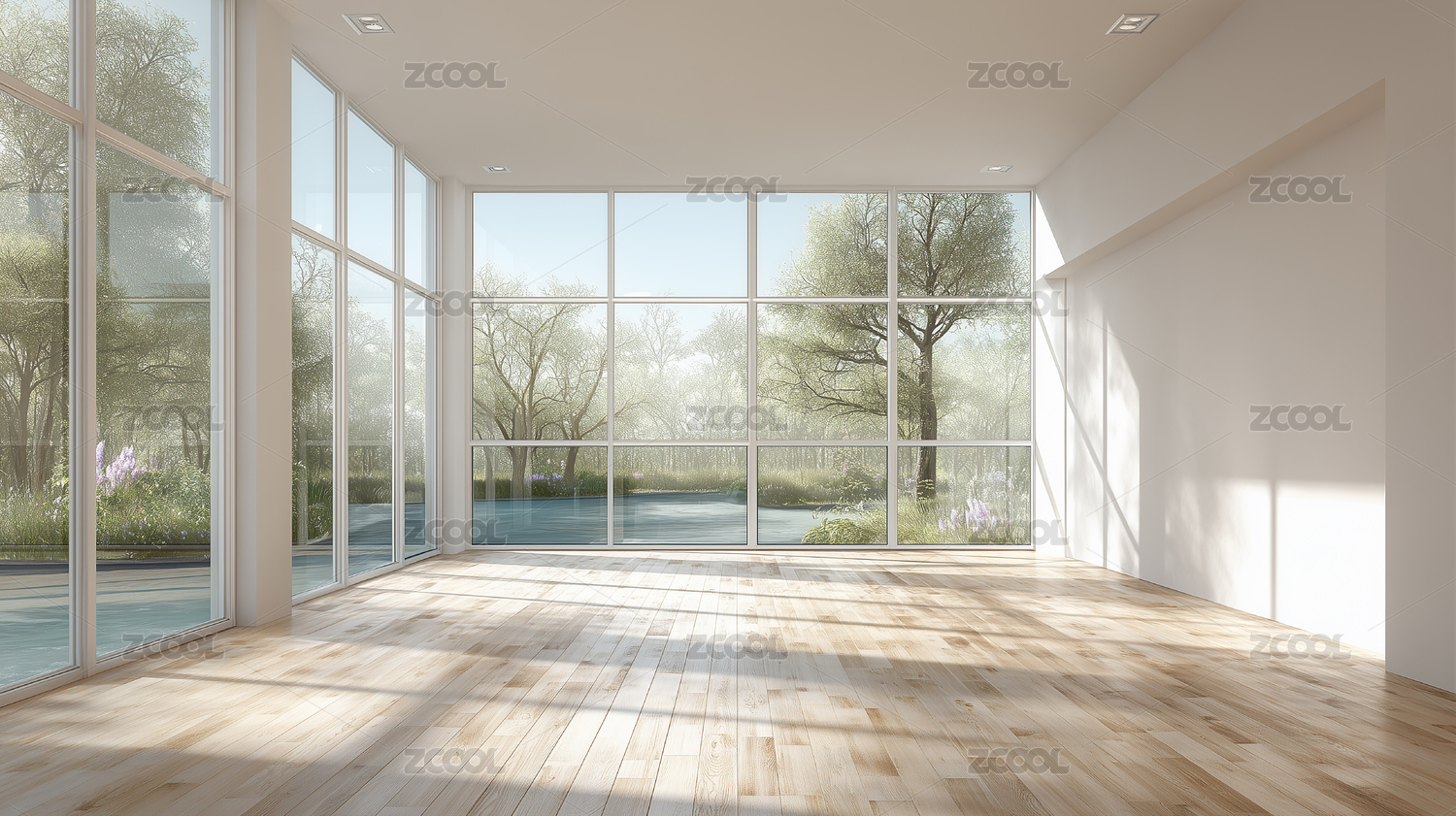 室内落地窗空房间样板房背景