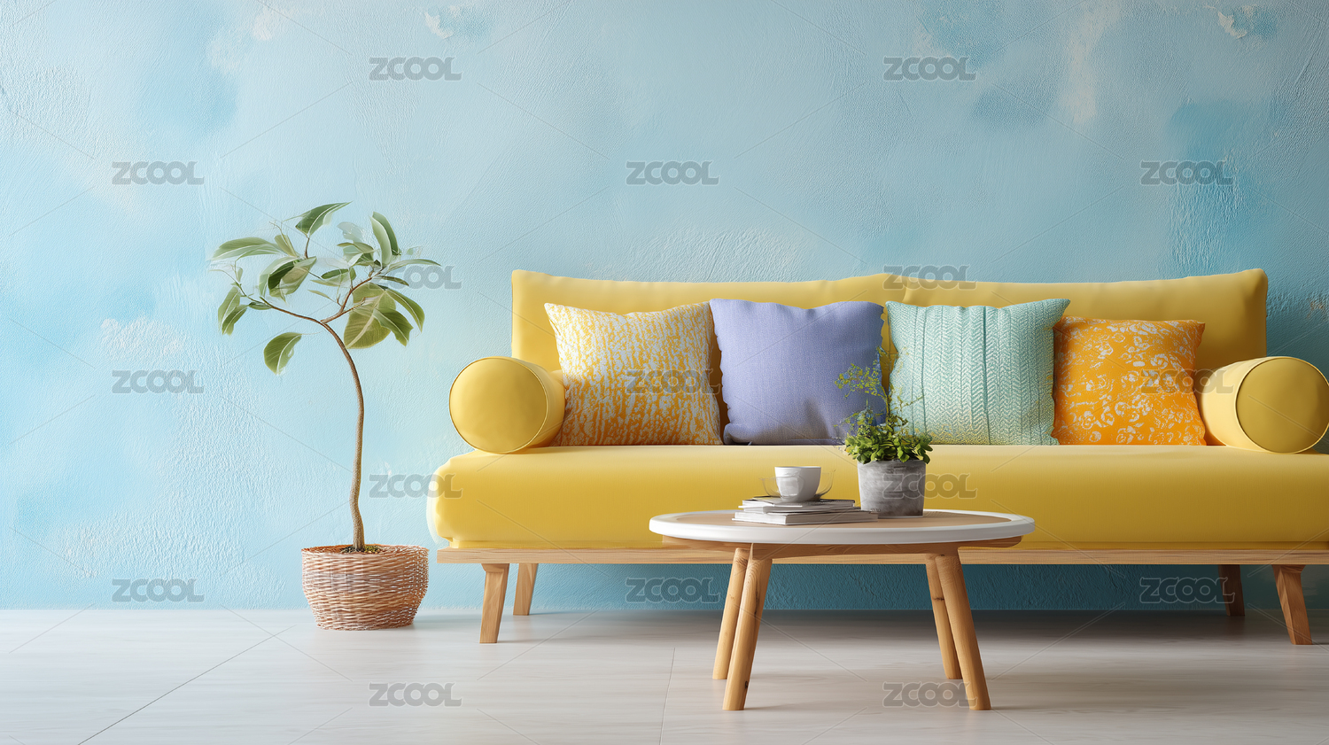 黄色沙发与简约茶几