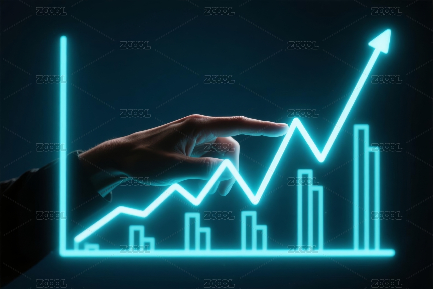 指向绿色趋势图表的手