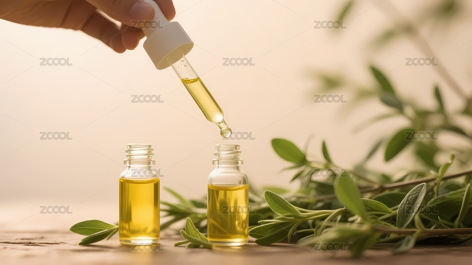 自然清新的绿色植物与滴管瓶