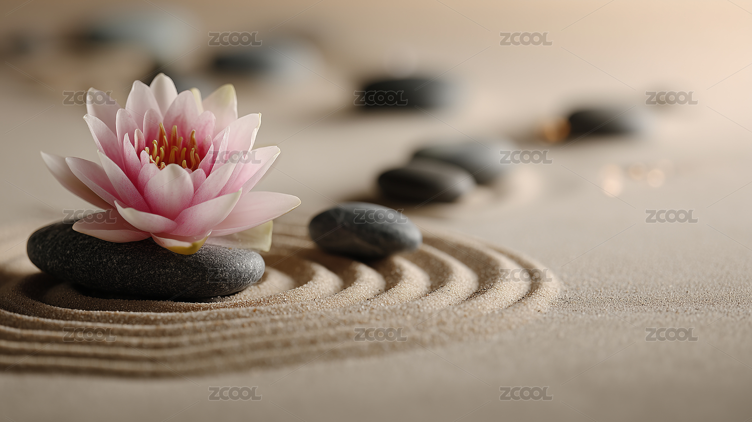 水疗,莲花,卵石,排列,自然,和谐,背景,中性,光线,温暖