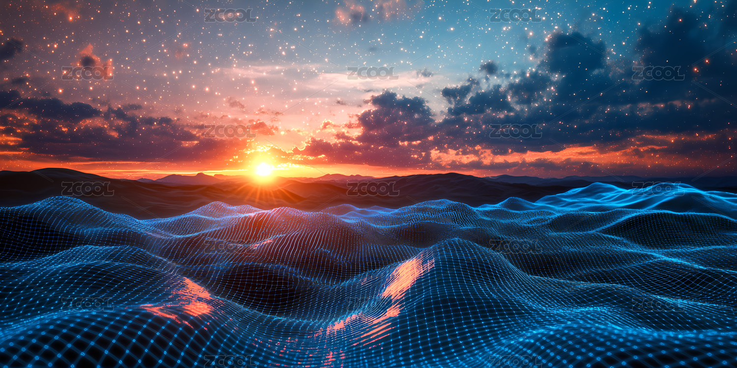 科技背景抽象曲线未来概念粒子AI数字艺术