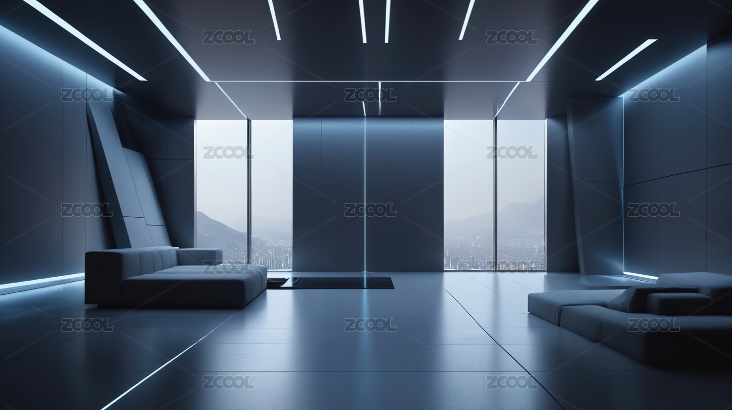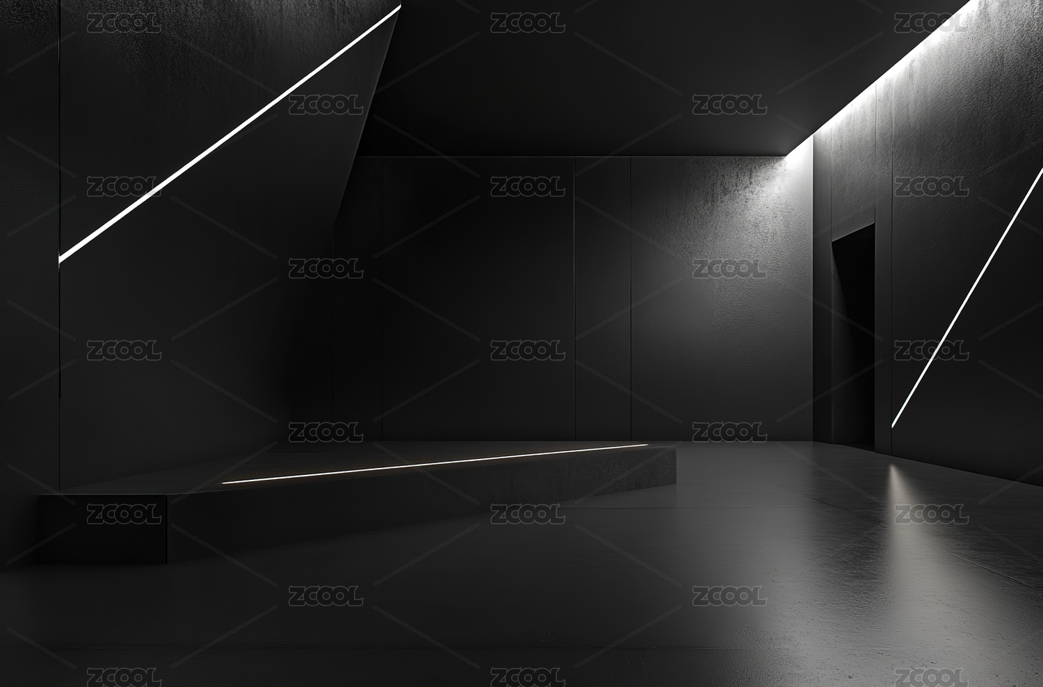 空间,未来,极简,色调,暗色,墙面,黑色,哑光,LED,灯光