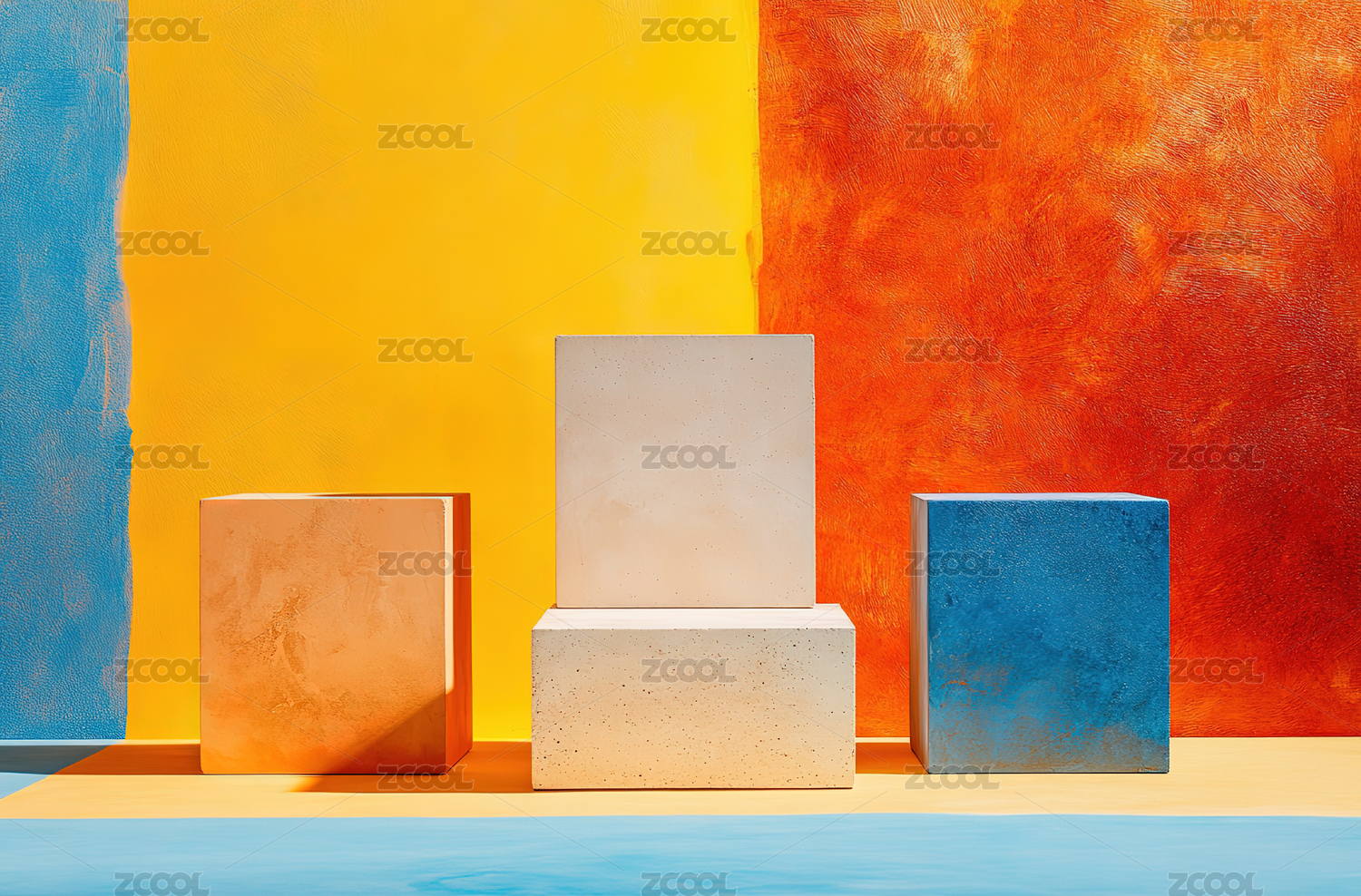 不同颜色材质方块的堆叠组合抽象艺术
