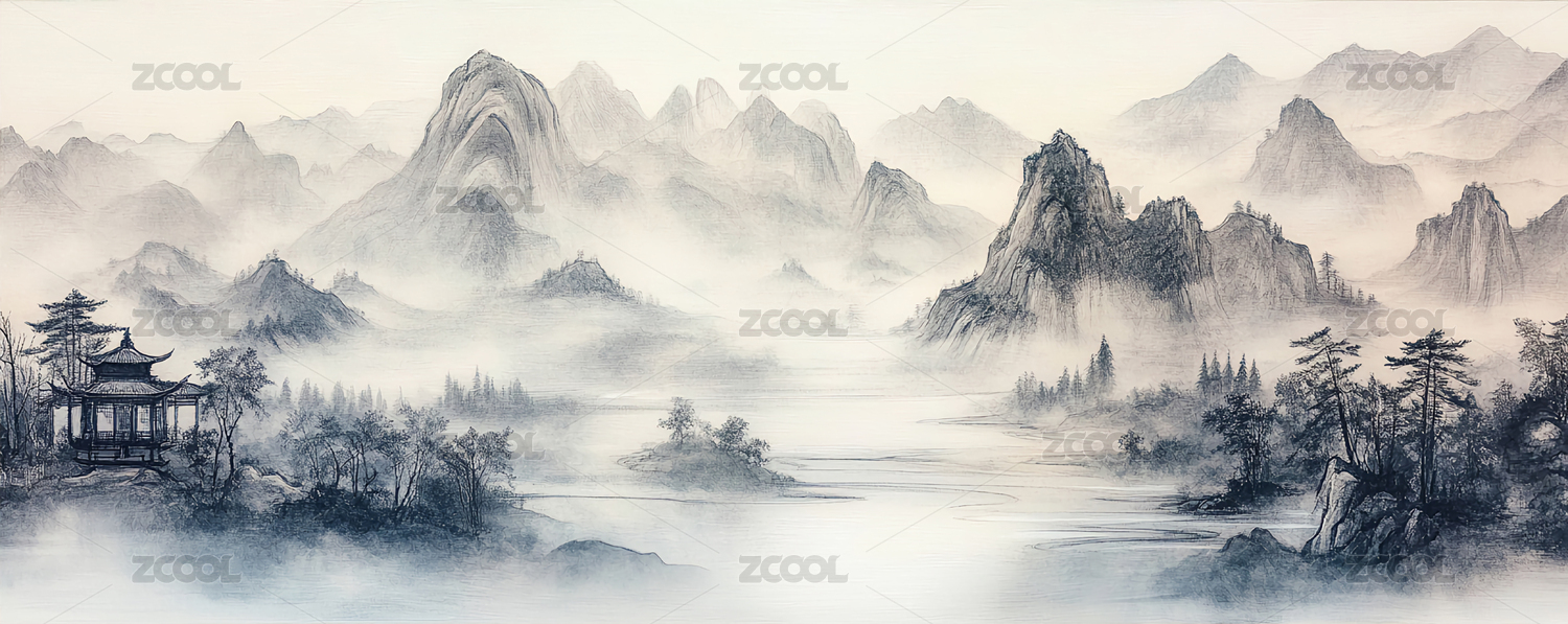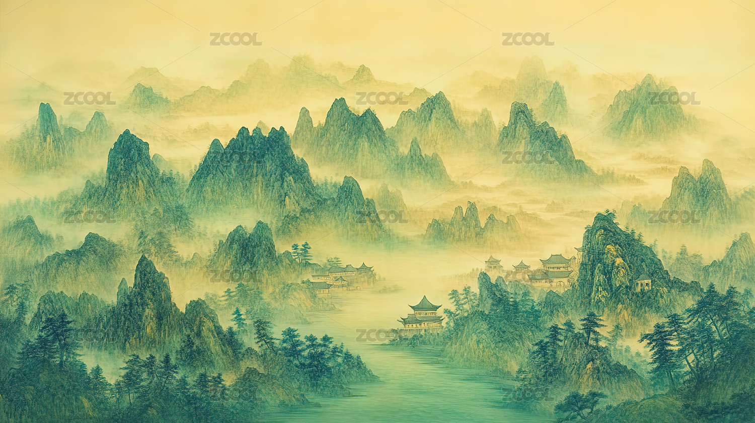 金色,自然,山谷,风景,艺术,绘画,亚洲,美丽,和平,宁静