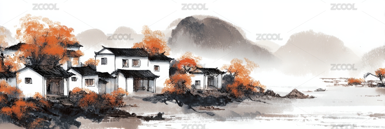 自然,美丽,设计,数字,山脉,风景,绘画,色彩,房屋,宁静