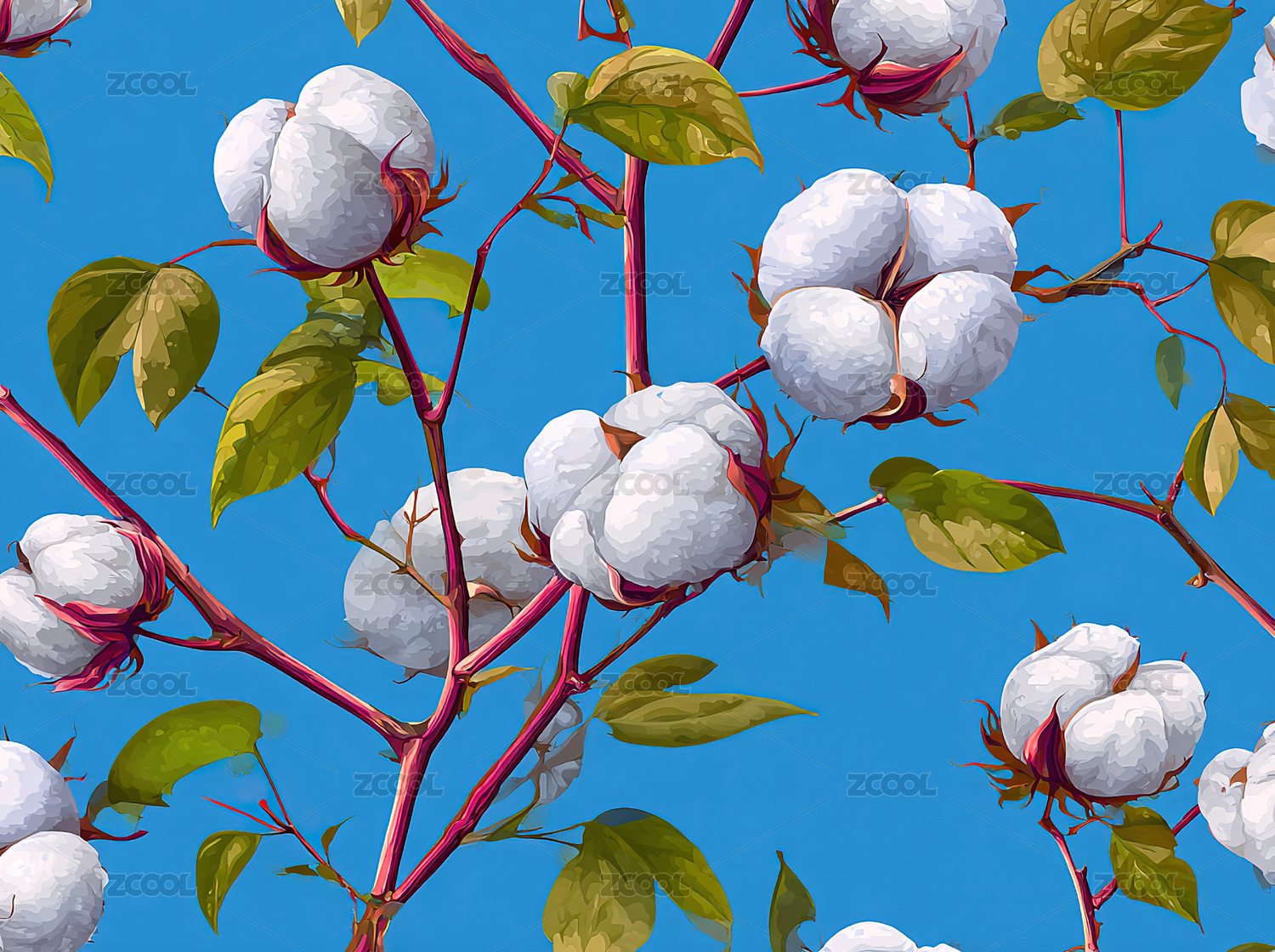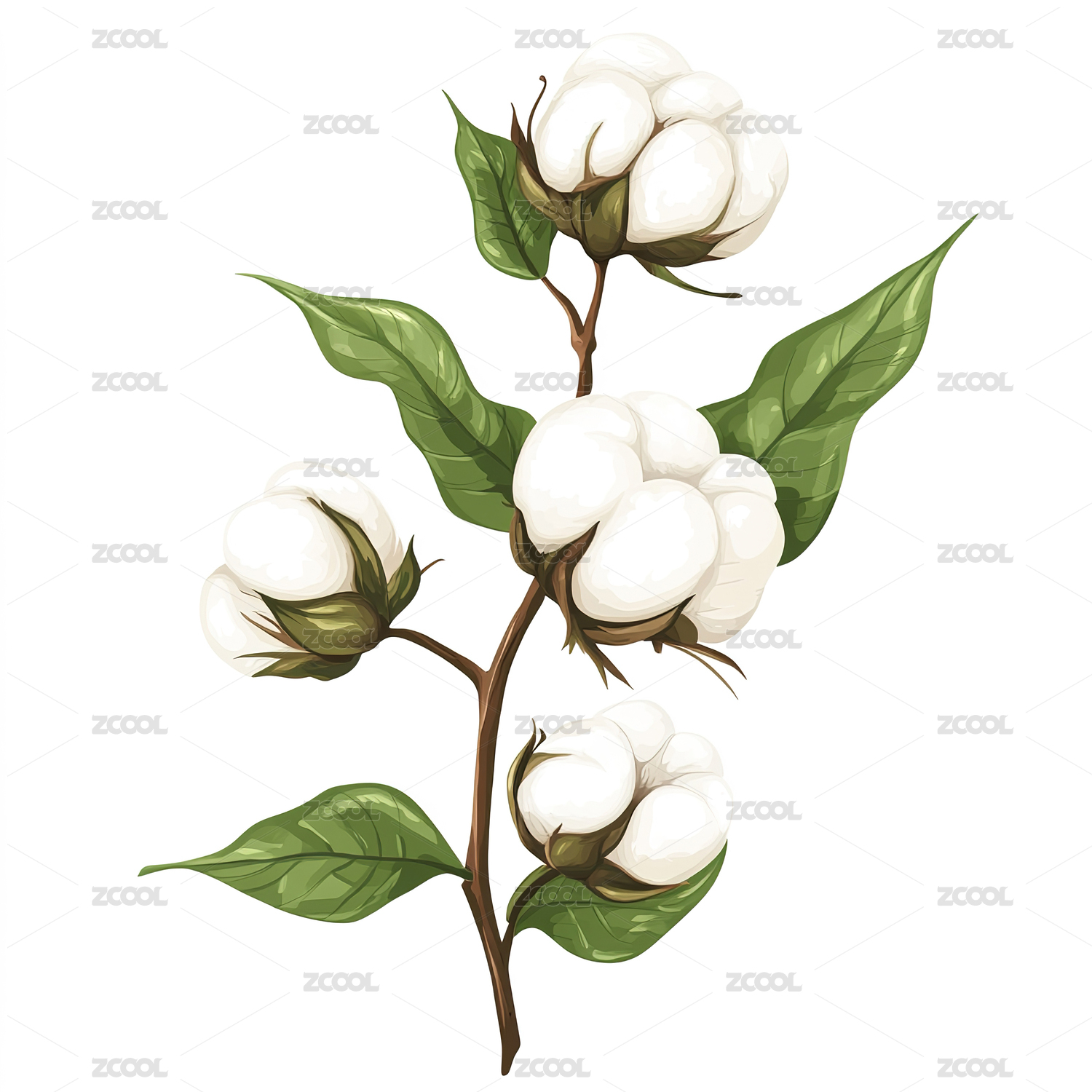 棉花枝条水彩画风格