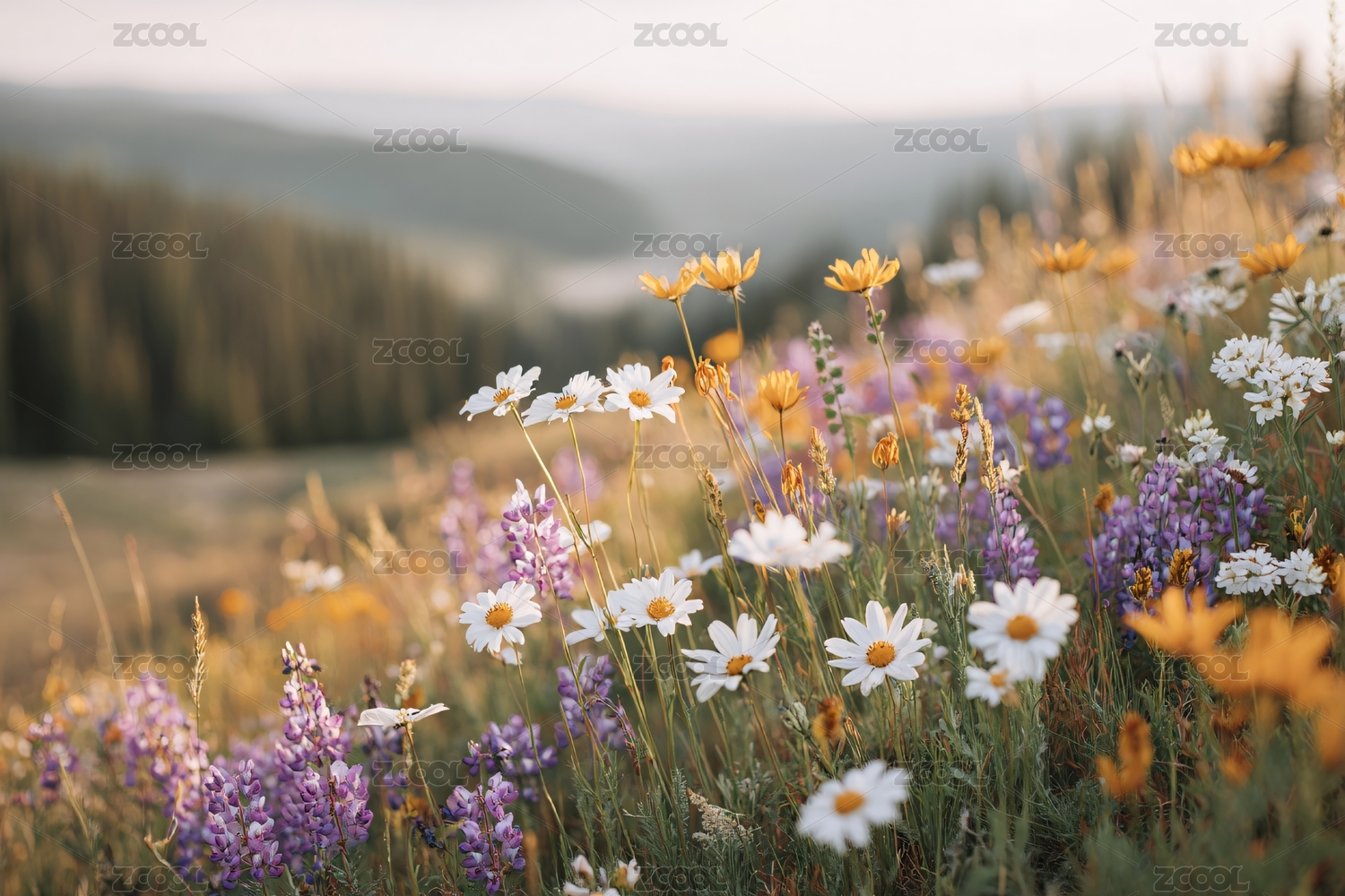 山间烂漫野花景色