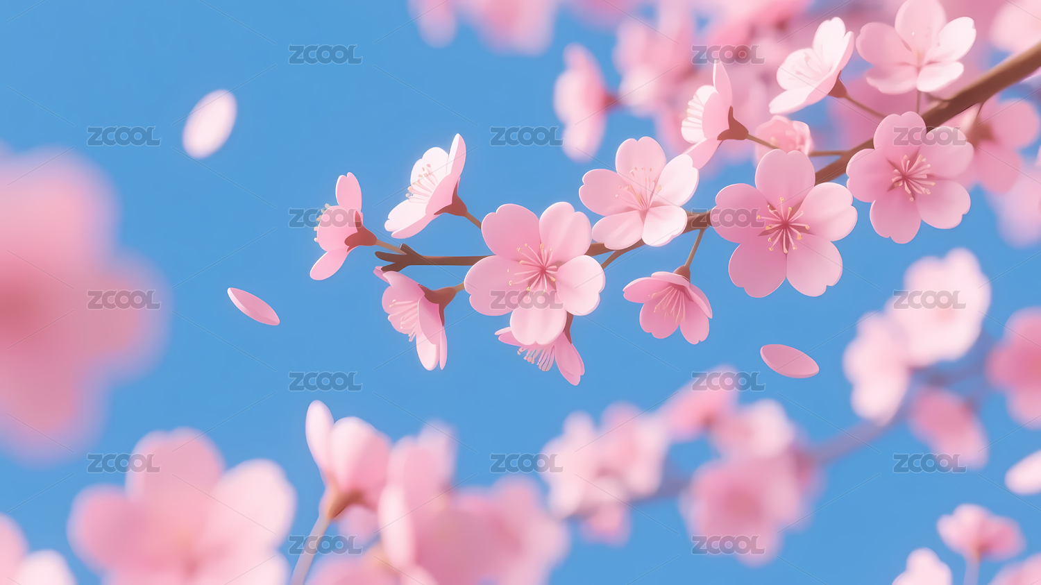背景,渐变,柔和,自然,花朵,粉色,淡蓝,樱花,树枝,和谐