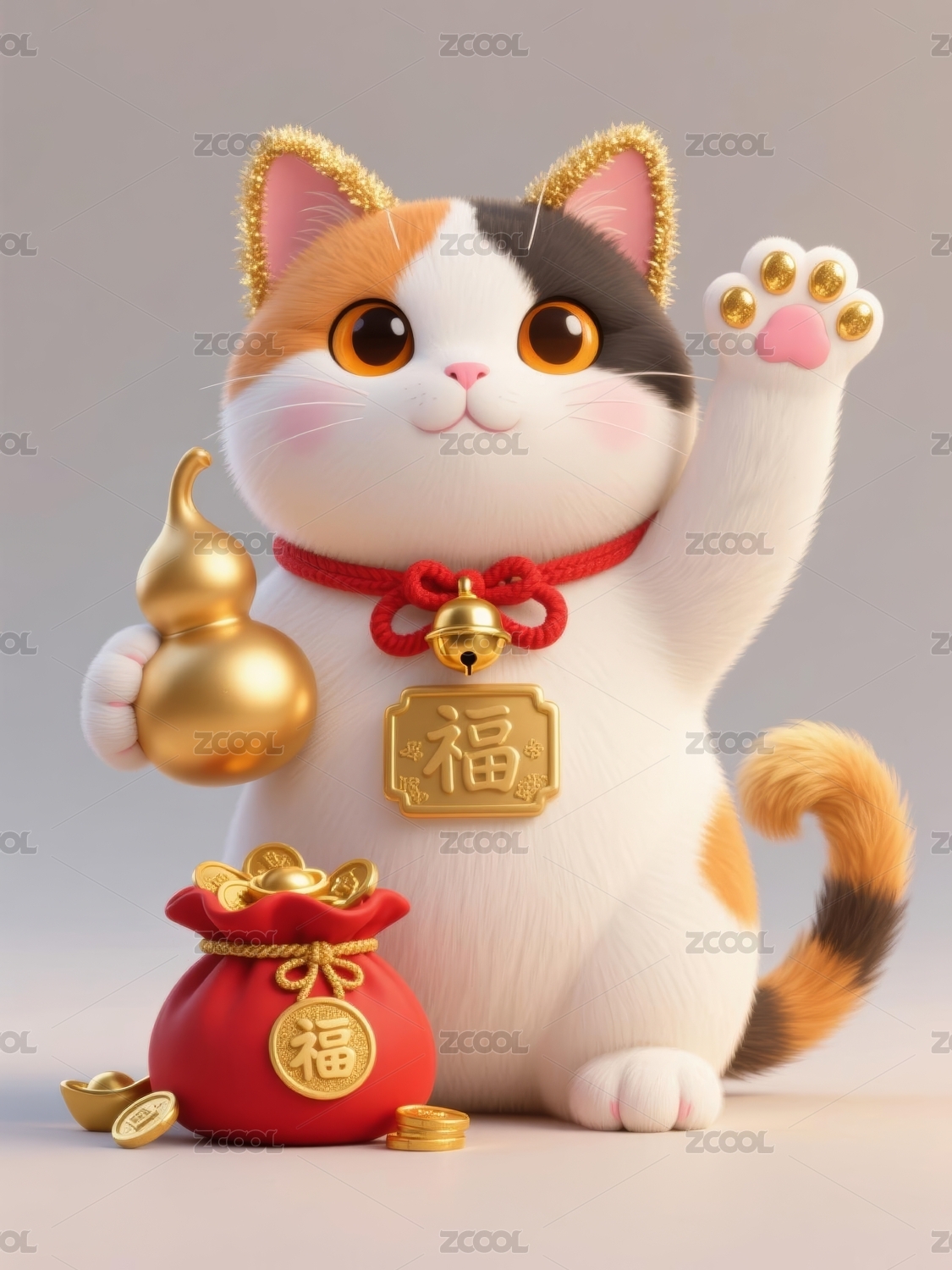 招财猫系萌趣风祈福场景